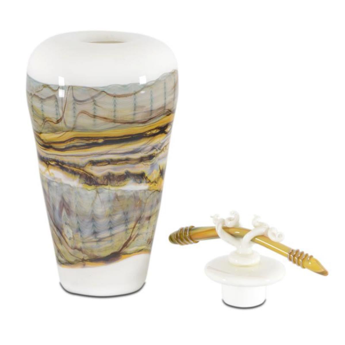 "Small White Opal Covered Jar with Finial" Hand Blown Glass Sculpture, Hand Signed by GartnerBlade G