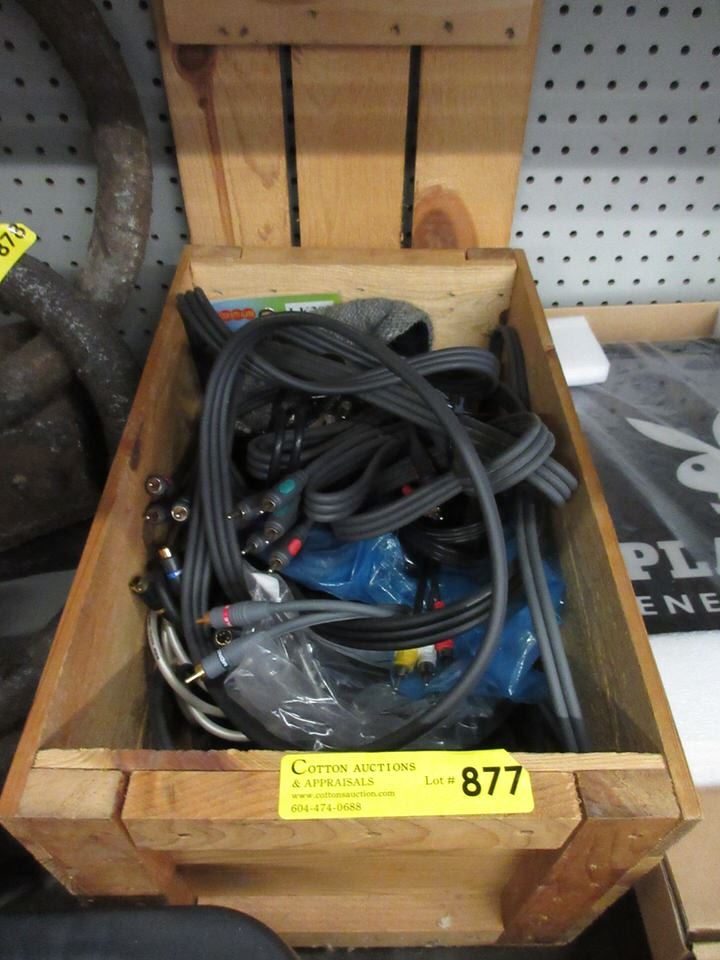 Small Wood Crate of Audio Cables & More