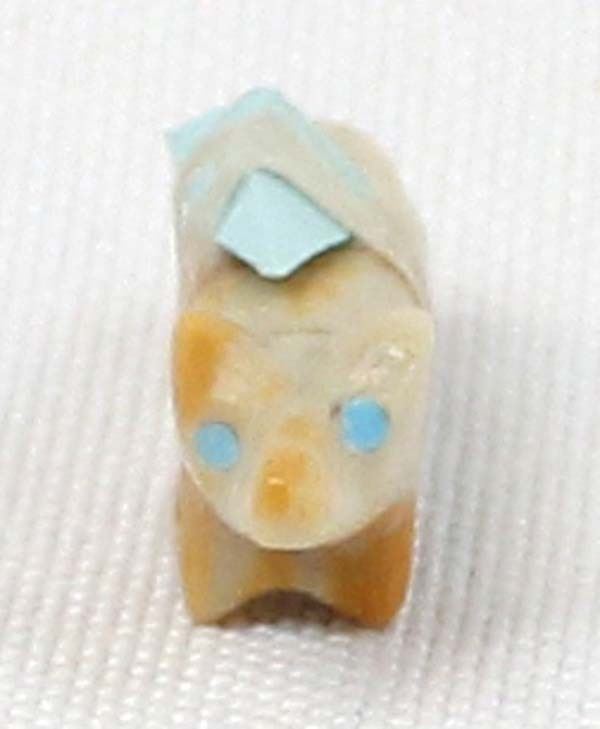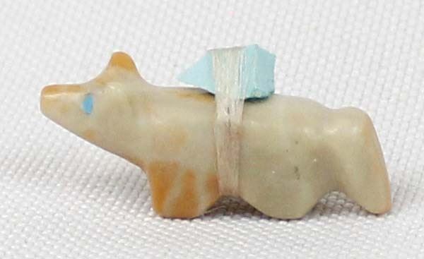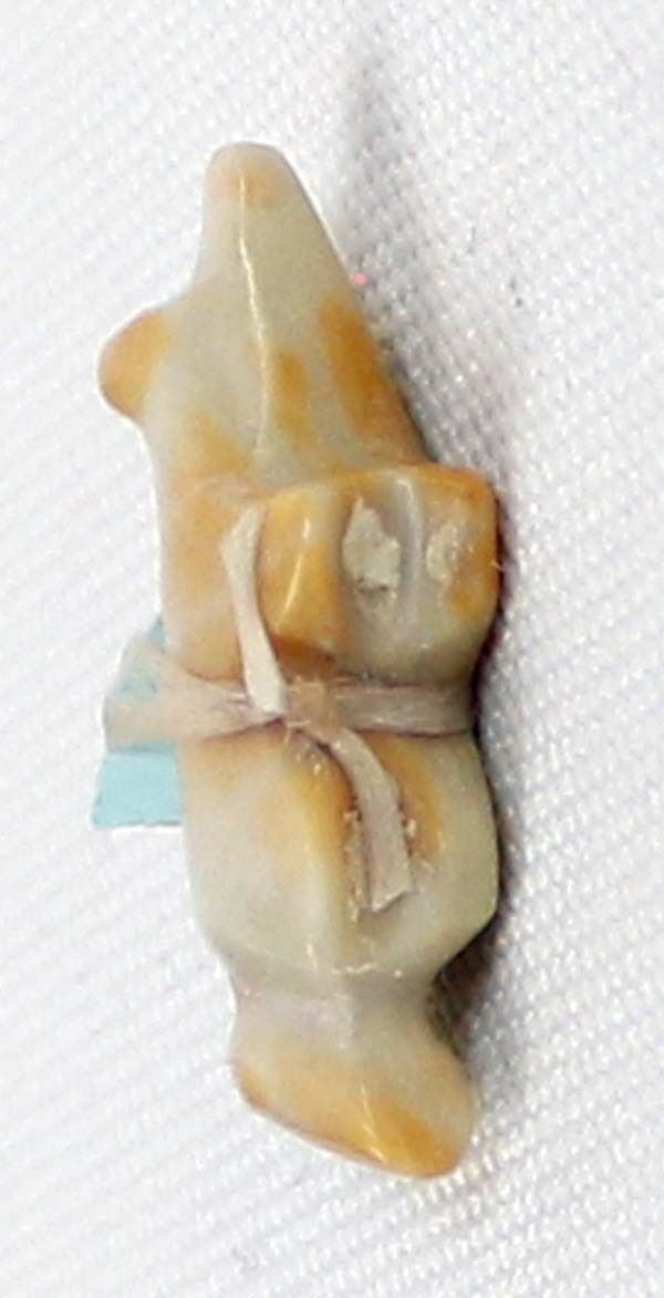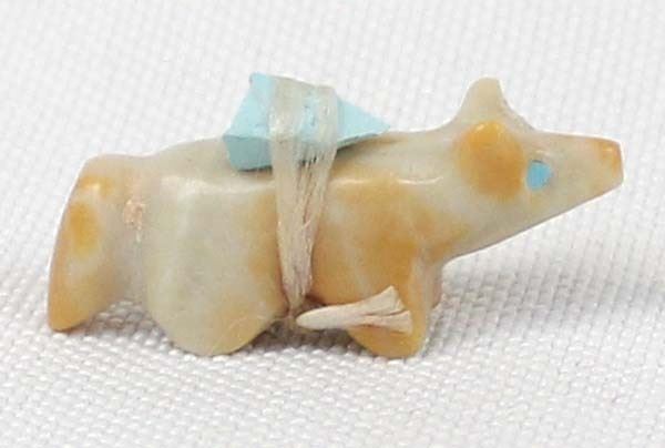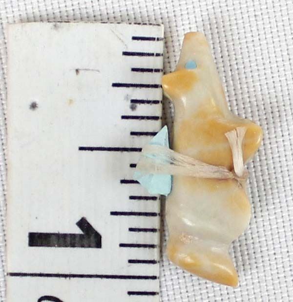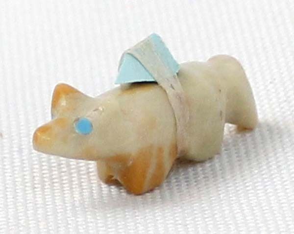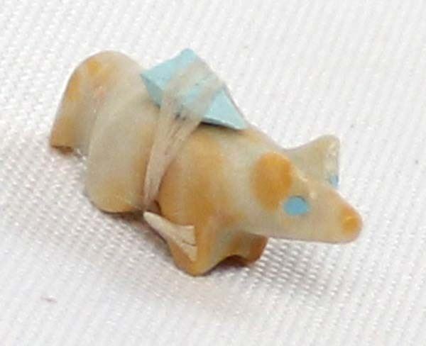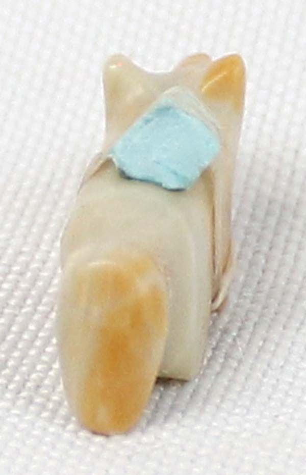 Small Native American Zuni Dolomite Bushy Tail Fox Fetish, measures 1'' x .25'' x .5'', turquoise spirit bundle and eyes