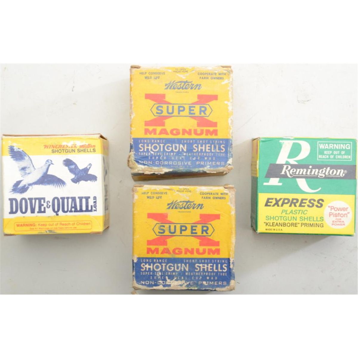 Small ammo lot of 11 boxes of shotgun shells, most full including 16 and 20 gauge by Western, Remington and Winchester-Western. Est.: $50-$75.