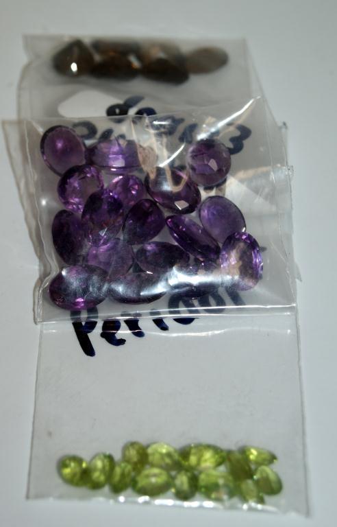 Small bags of Smoky Quartz, Amethyst, & Peridot
