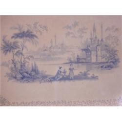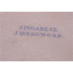 Small blue transferware platter with river scene. Measures 10 1/2" x 8". Marked on back Singanese J. Wedgwood.
