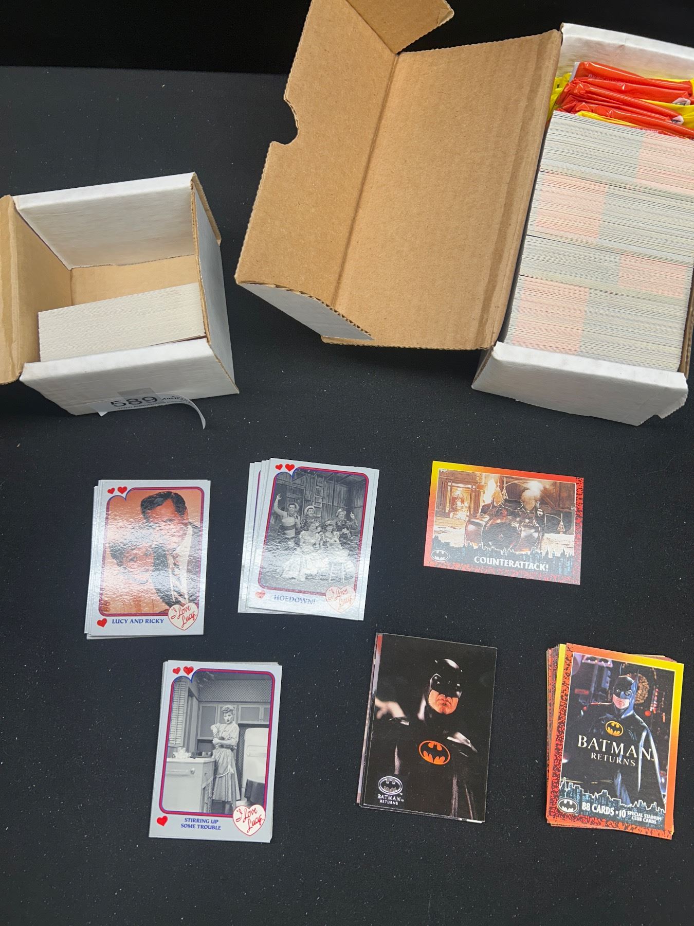 Small box of I Love Lucy Trading Cards and another box of batman 92 trading cards