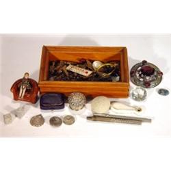 Small box of assorted items including costume jewellery, watch movements, silver top etc.