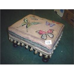 Small decorative tapestry topped footstool