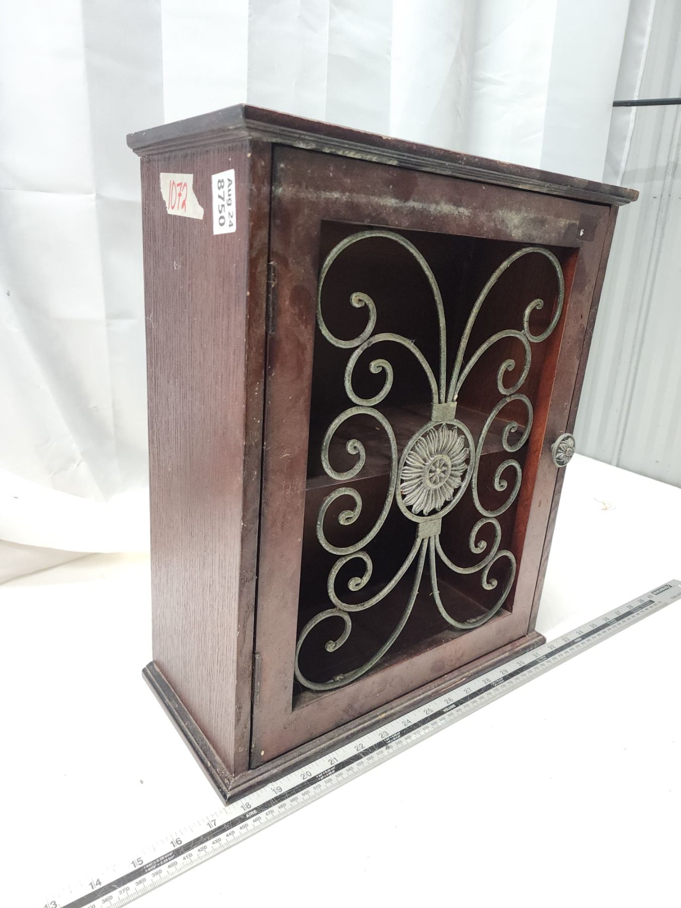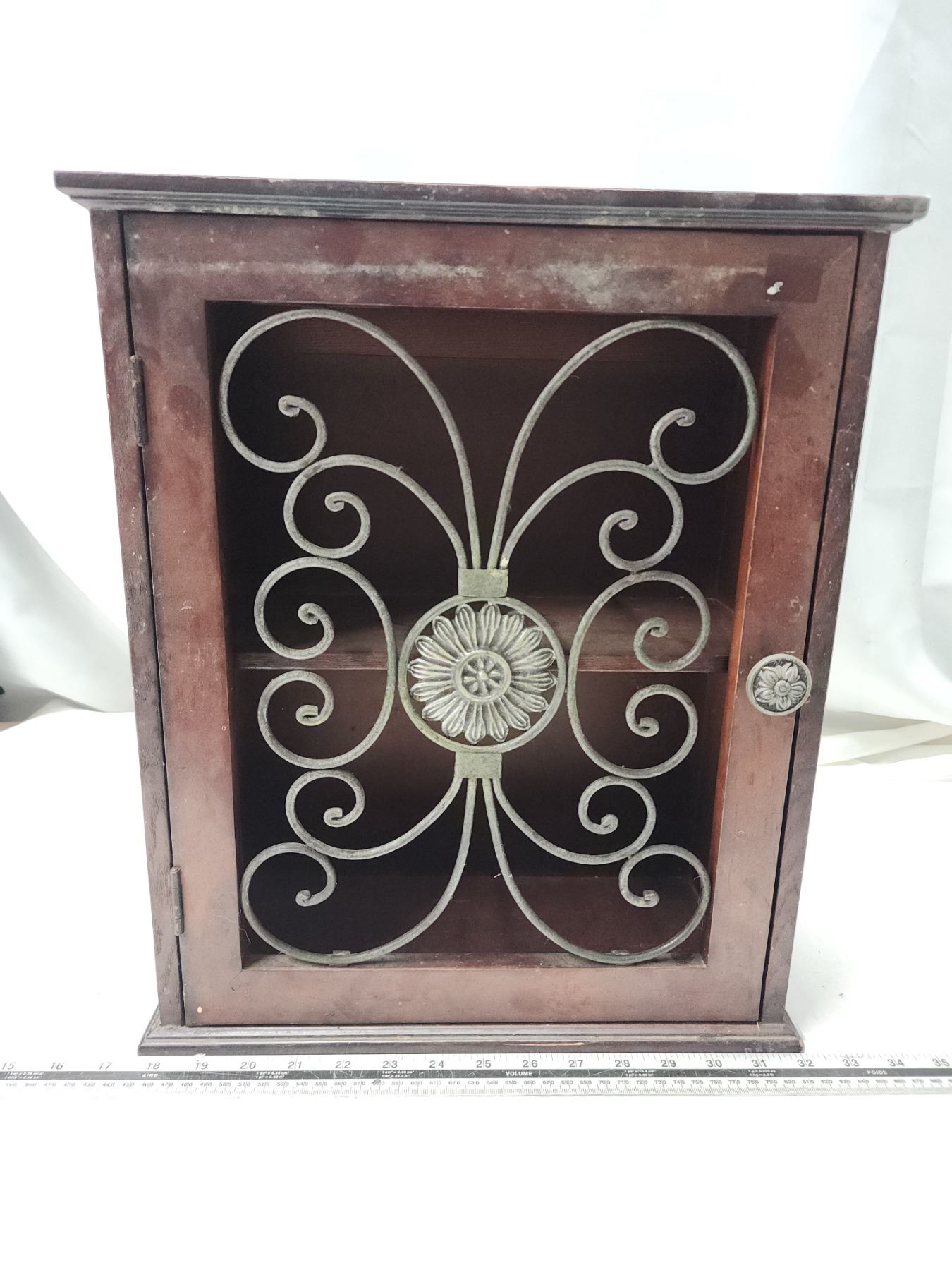 Small display shelf, w/ metal accented door - 14.5"W x 17"H x 6.5"D