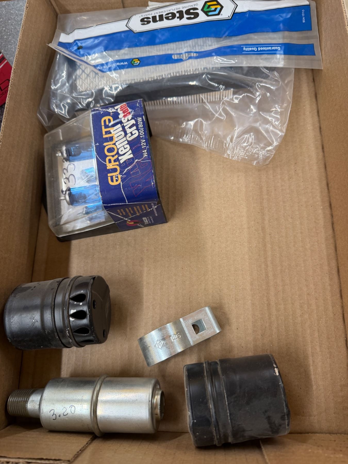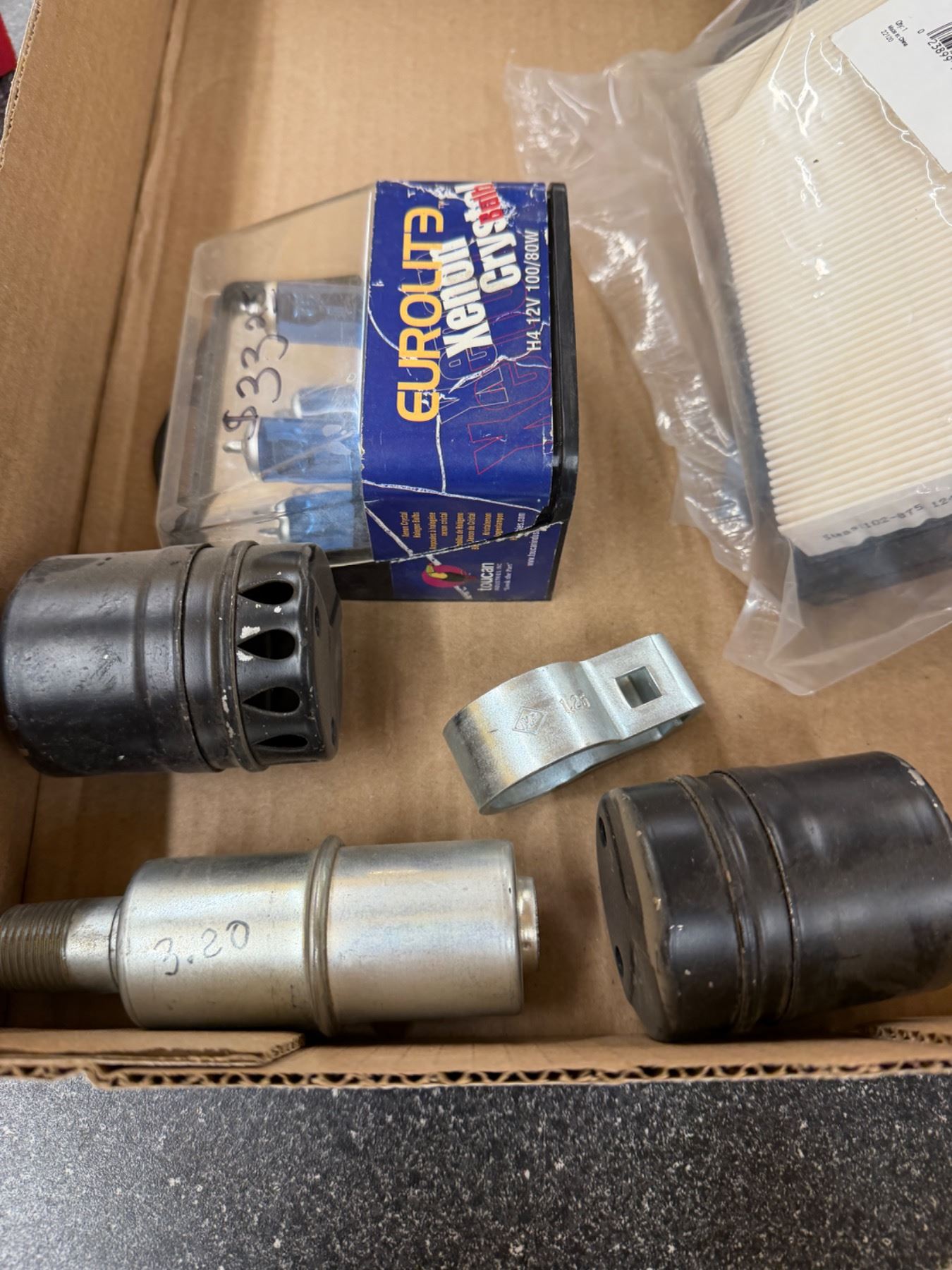 Small engine, mufflers, lights, and a filter