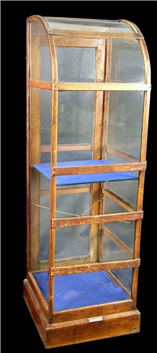 Small, floor model showcase w/ curved glass top 60" tall and shelves are 18 x 19"