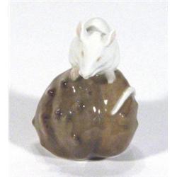 Small hand painted Royal Copenhagen mouse on a rock, blue underglaze mark to base, 6cm high
