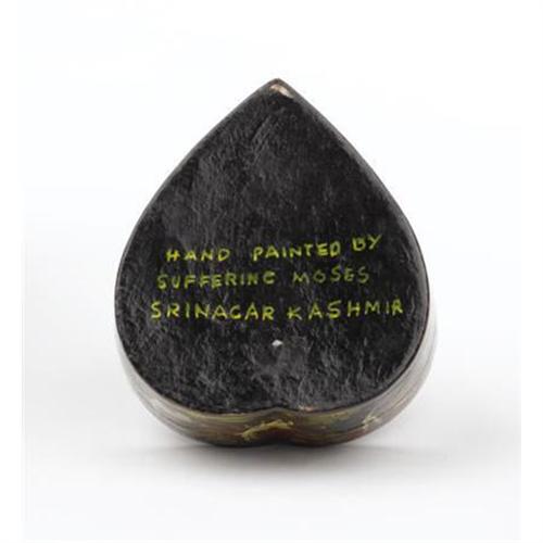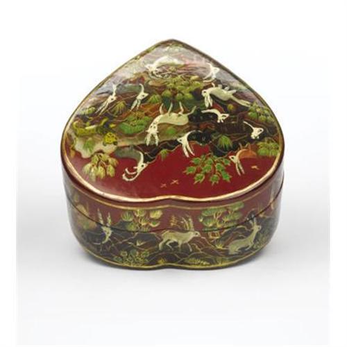 <B>A Small Lacquer Heart-Shaped Box</B></I><BR>Dark red ground with foliage and small animals depicted<BR>Signed on reverse<BR>1-1/4 x 3-1/4 x 3 inches <BR><BR><b>Shipping:</b> Requires 3rd Party Shipping (<a target="_blank" href="http://www.heritageauctions.com/common/shipping.php">view shipping information</a>)