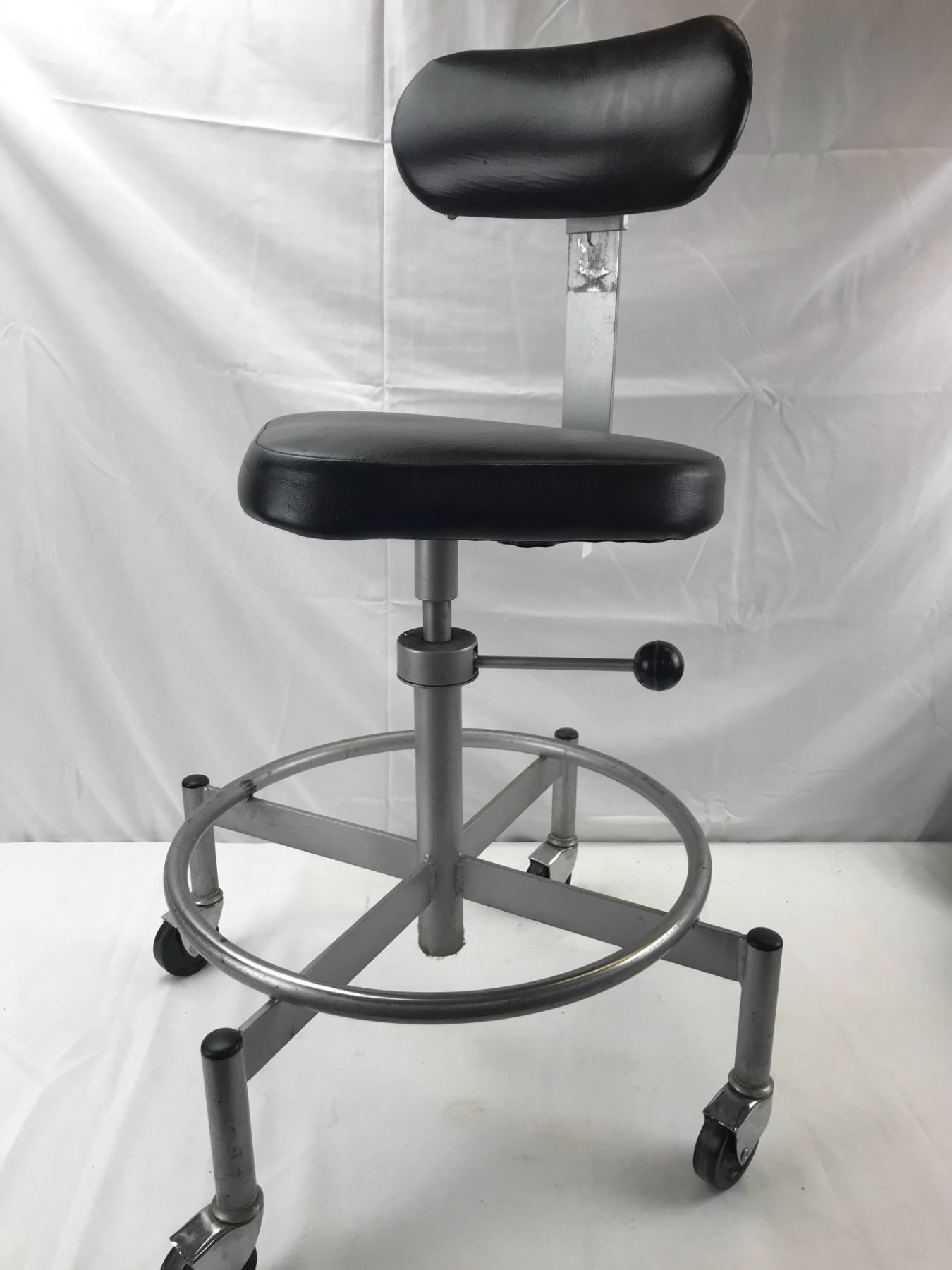Metal swivel stool on wheels. Dimensions 34" tall x 16" wide