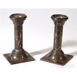 Small pair of square based silver candlesticks, Chester 1918, 11cm high