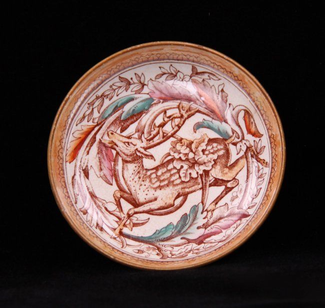 Small plate with deer design. Very old with crazing and marking on bottom. (Size: See last photo for measurement.)(Size: See last photo for measurement.) Photos are part of the description representing the condition report. Pangaea Auctions urges Bidder's to view all attached photos.