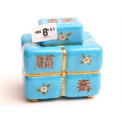 Small porcelain oriental lidded jar with character and flower decoration, possibly some restoration