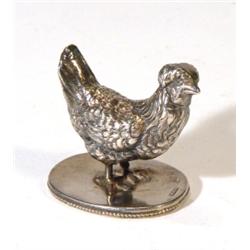 Small silver chicken on an oval base, 5cm …