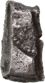 Small silver "plata corriente" piece cut from a "splash" ingot, marked with partial tax stamp, 5.8 g