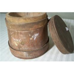Small sugar bucket, 6-1/2", with wine bail handle; Firkin, dirty, but good original condition, no repairs