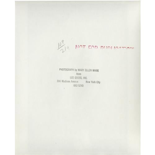 <B>Smaller Close-up of Marlon Brando as Colonel Kurtz by Mary Ellen Mark.</B></I> An 8" x 10" b&w glossy of the close-up of Marlon Brando as Colonel Kurtz, gazing off to one side, taken by photographer Mary Ellen Mark on the set of <I>Apocalypse Now.</B></I> In Excellent condition with Mark's studio stamp on the reverse side. <I>From the collection of Marlon Brando.</B></I>