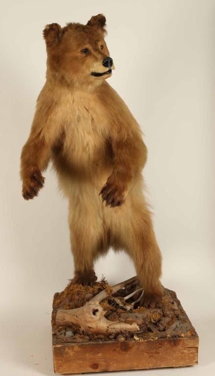 Standing on his back legs on natural rocky foreground, 63"Tx30"x30", overall good condition slight damage to one paw. From Arizona collector Don Fortney Sr.