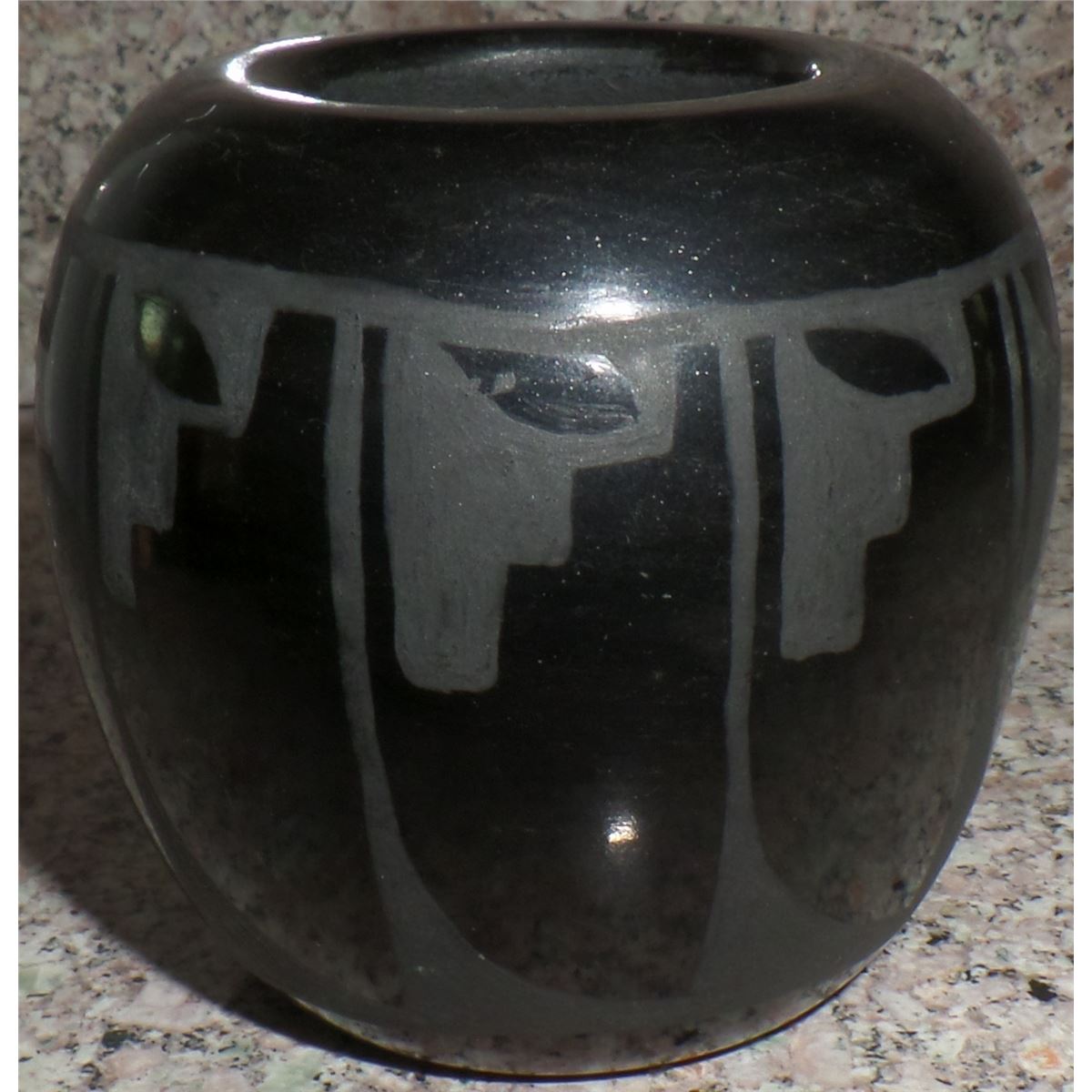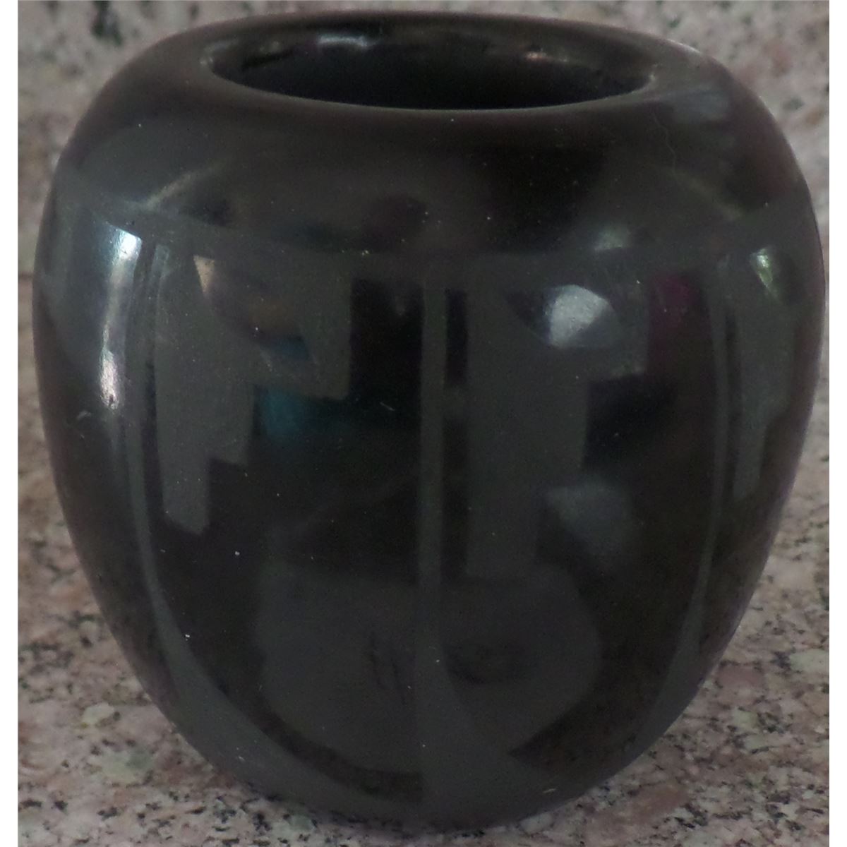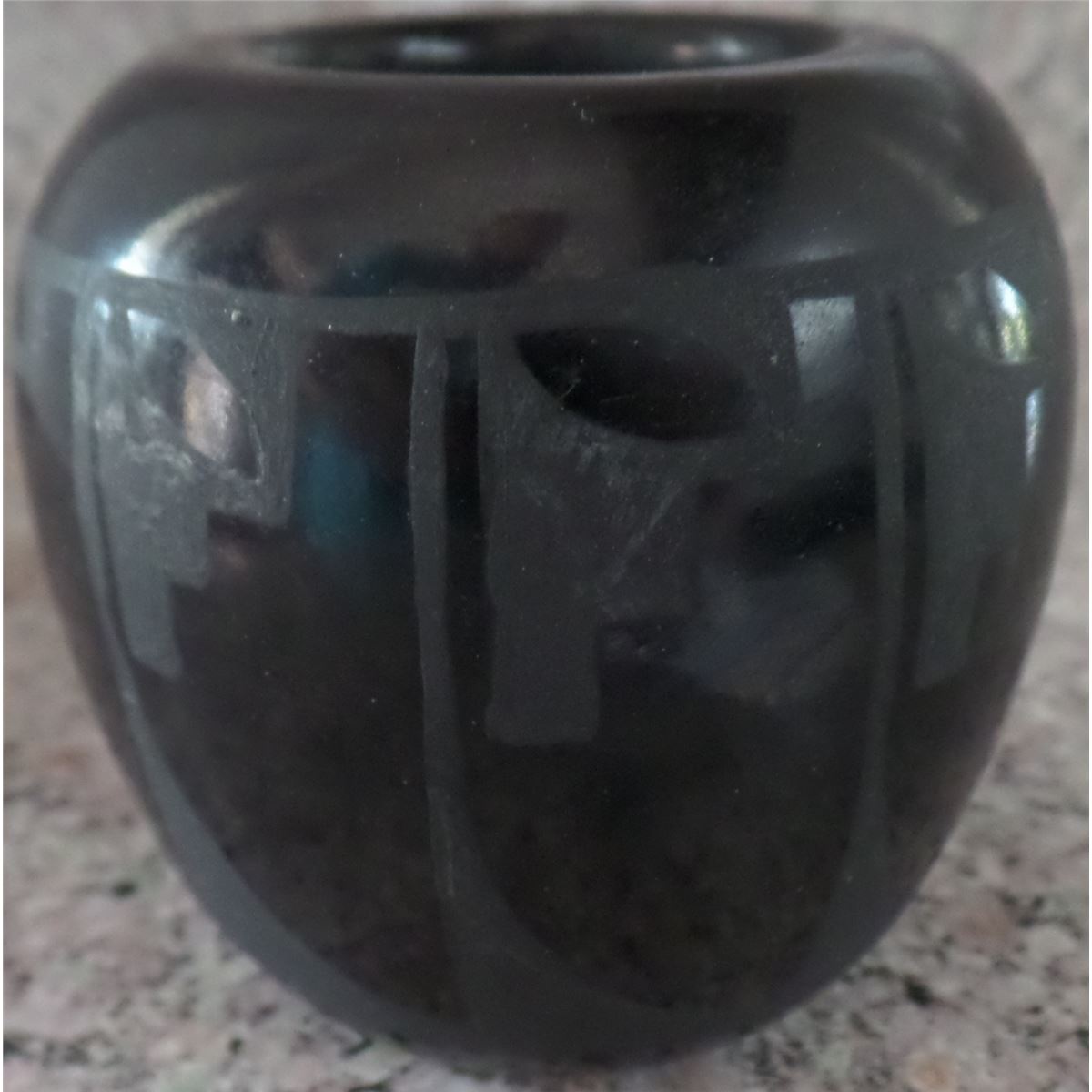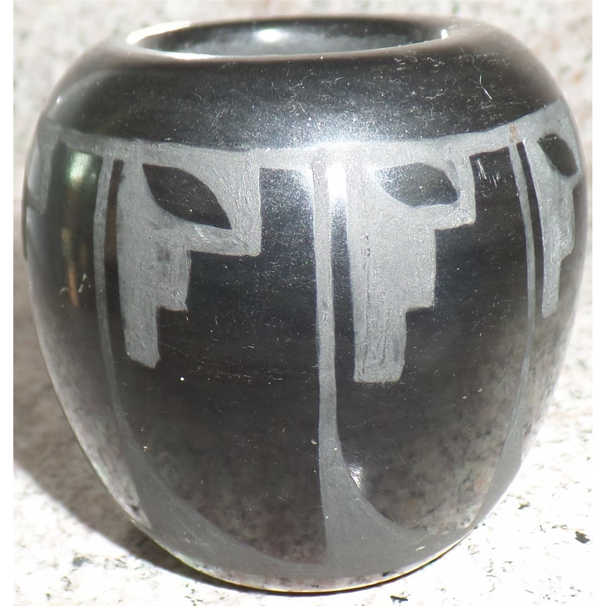 Great clay and paint Santa Clara potter bowl measuring 2 1/2 x 2 inches. Signed: Cleste H. Very Nice condition. Shipping $14.50.