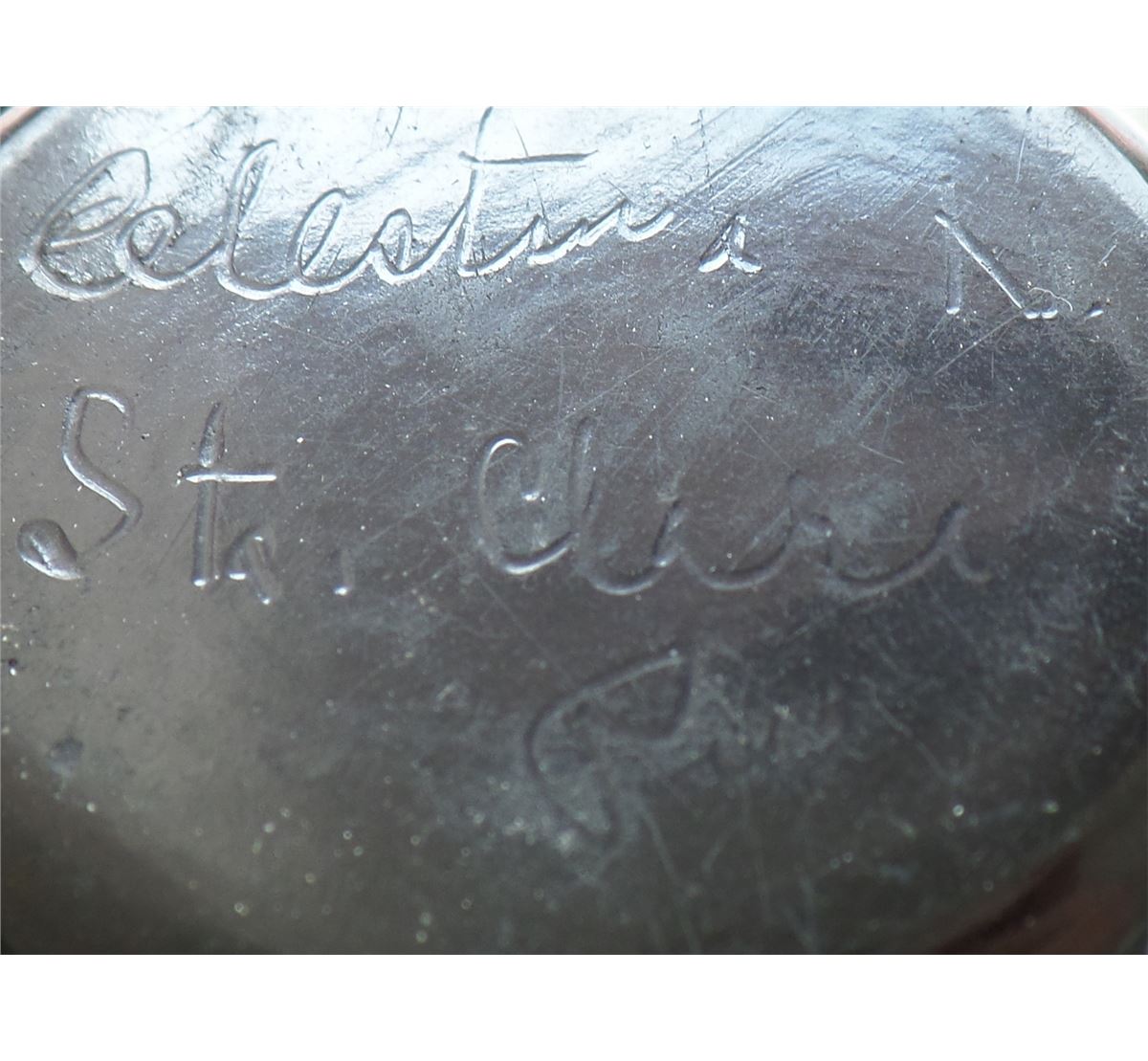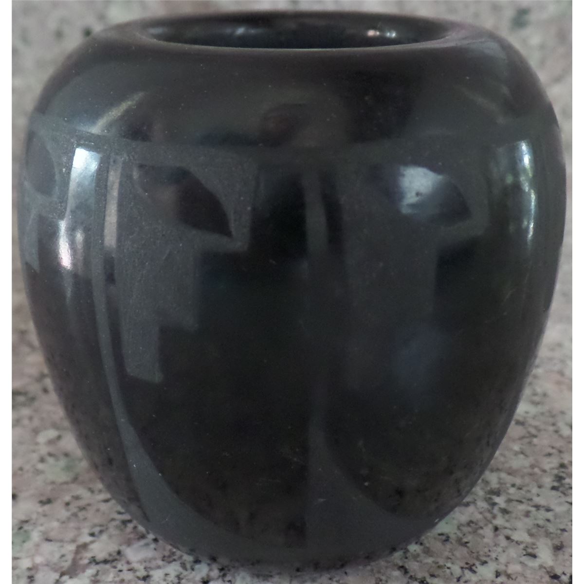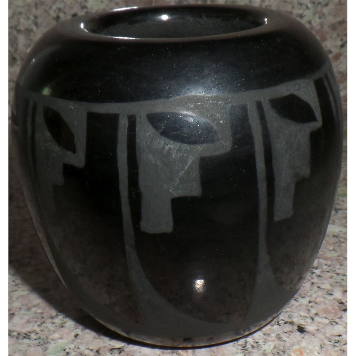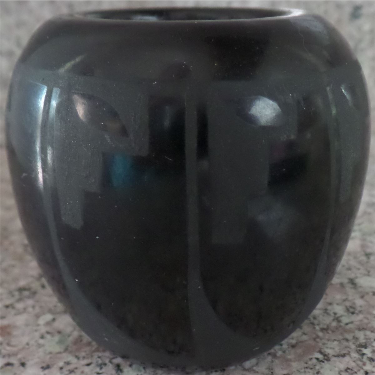 Great clay and paint Santa Clara potter bowl measuring 2 1/2 x 2 inches. Signed: Cleste H. Very Nice condition. Shipping $14.50.