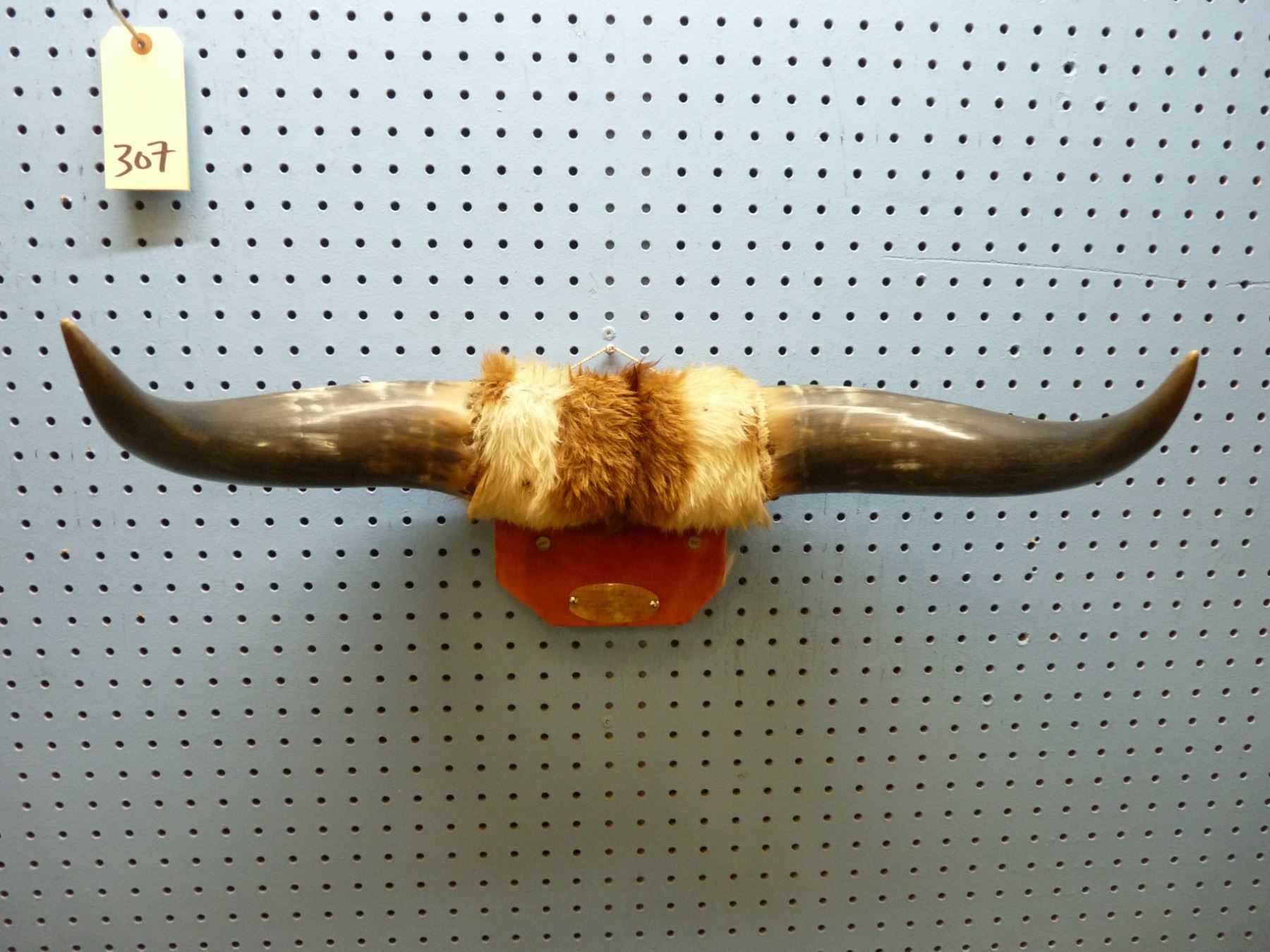 Smaller mounted set of Texas Longhorns, 22 inches tip to tip