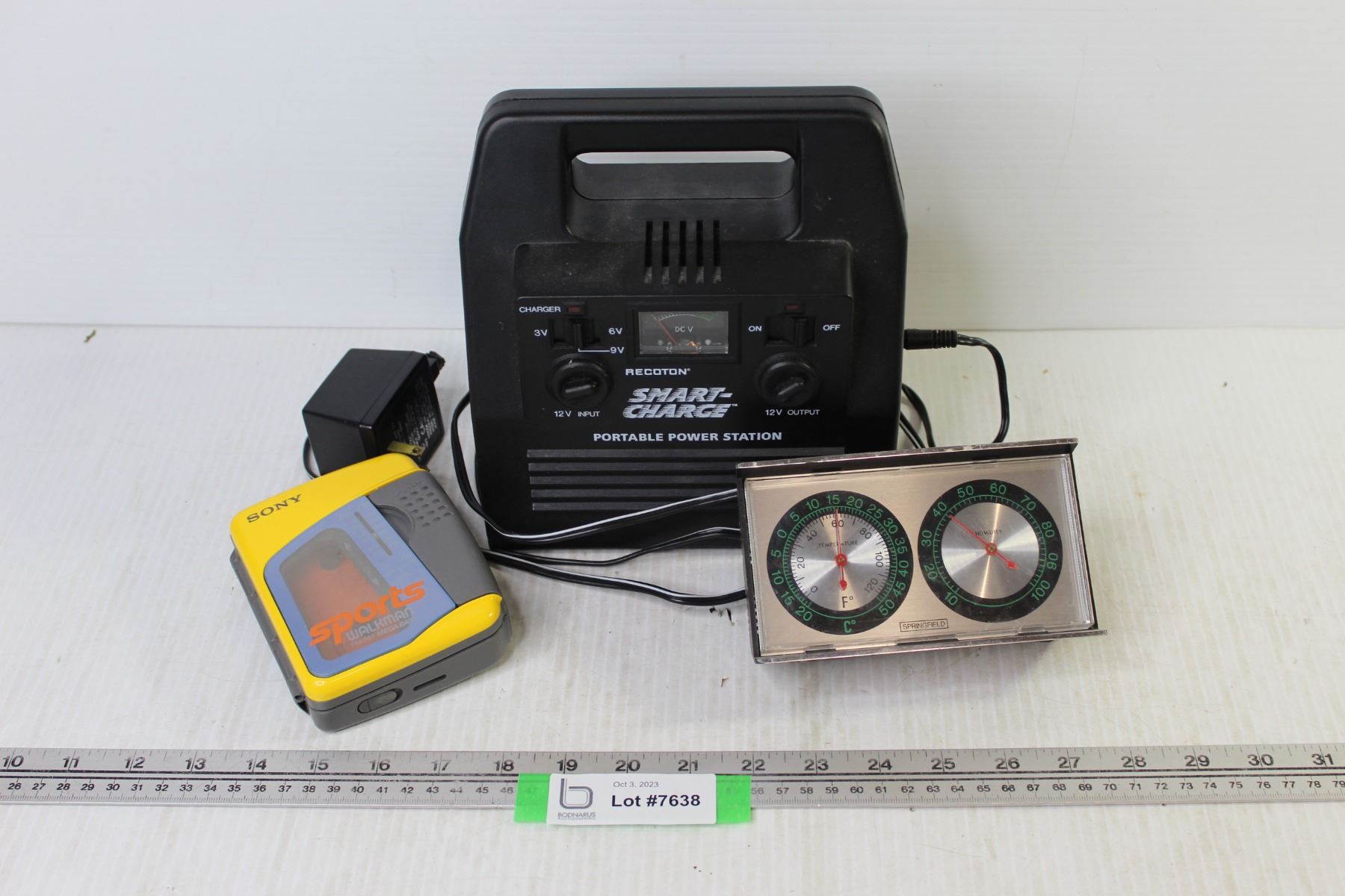 Smart Charge Portable Power Station (untested) - Springfield Thermometer - Sony Sport Walkman Cassette Player FM-AM Radio (untested)