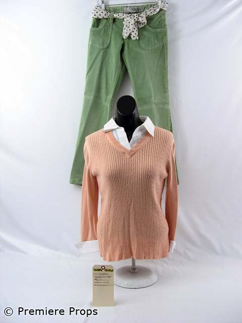 Vanessa's (Ellen Page) peach w/ white cotton collar/cuffs "Van Heusen" l/s sweater (size XS), lime green "Guess" corduroys (size 24), white w/ black polka dots sash (includes wardrobe tag / screen worn)