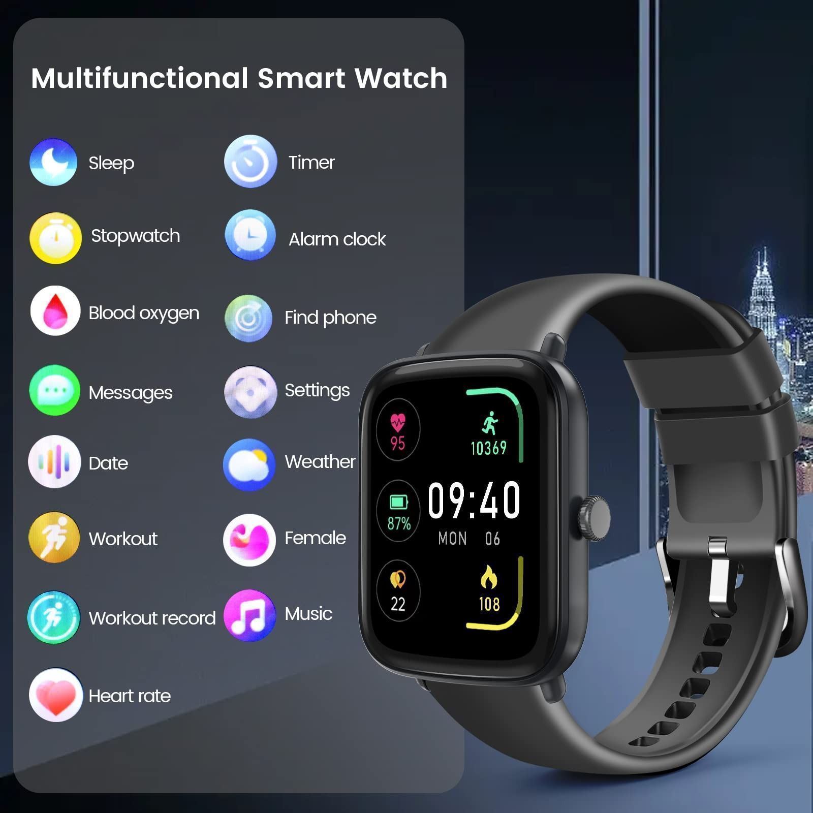 Smart Watch, Fitness Tracker with Heart Rate Blood Oxygen Sleep Monitor