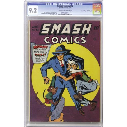 <B>Smash Comics #52 Davis Crippen ("D" Copy) pedigree (Quality, 1944) CGC NM- 9.2 Cream to off-white pages.</B></I> Midnight is featured on this Alex Kotzky cover. Overstreet 2006 NM- 9.2 value = $350. CGC census 9/06: 1 in 9.2, none higher. <I>From the Crippen Collection</B></I>.<BR><BR><b>Shipping:</b> Slabbed Comic (<a target="_blank" href="http://www.heritageauctions.com/common/shipping.php">view shipping information</a>)