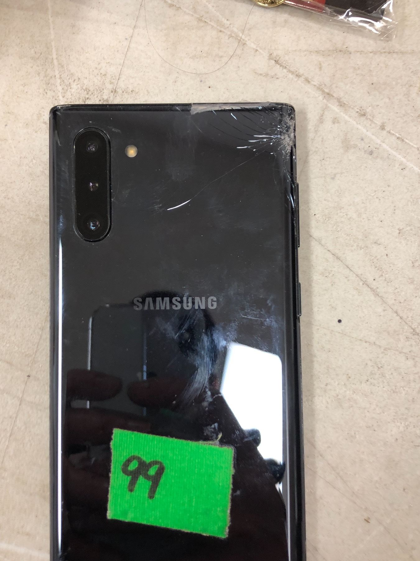 Smasung Galaxy note 10 with charger and earphones ( used condition, good working order and unlocked. There is a crack on the back)