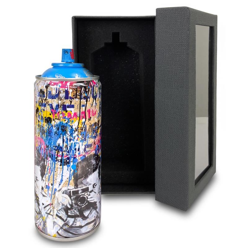 "Smile (Cyan)" is a numbered limited edition hand painted spray can by Mr Brainwash. This piece bears the plate signature of the artist and comes from his 2020 Classic Spray Can Collection. Measures approximately 2.5" x 7.5".