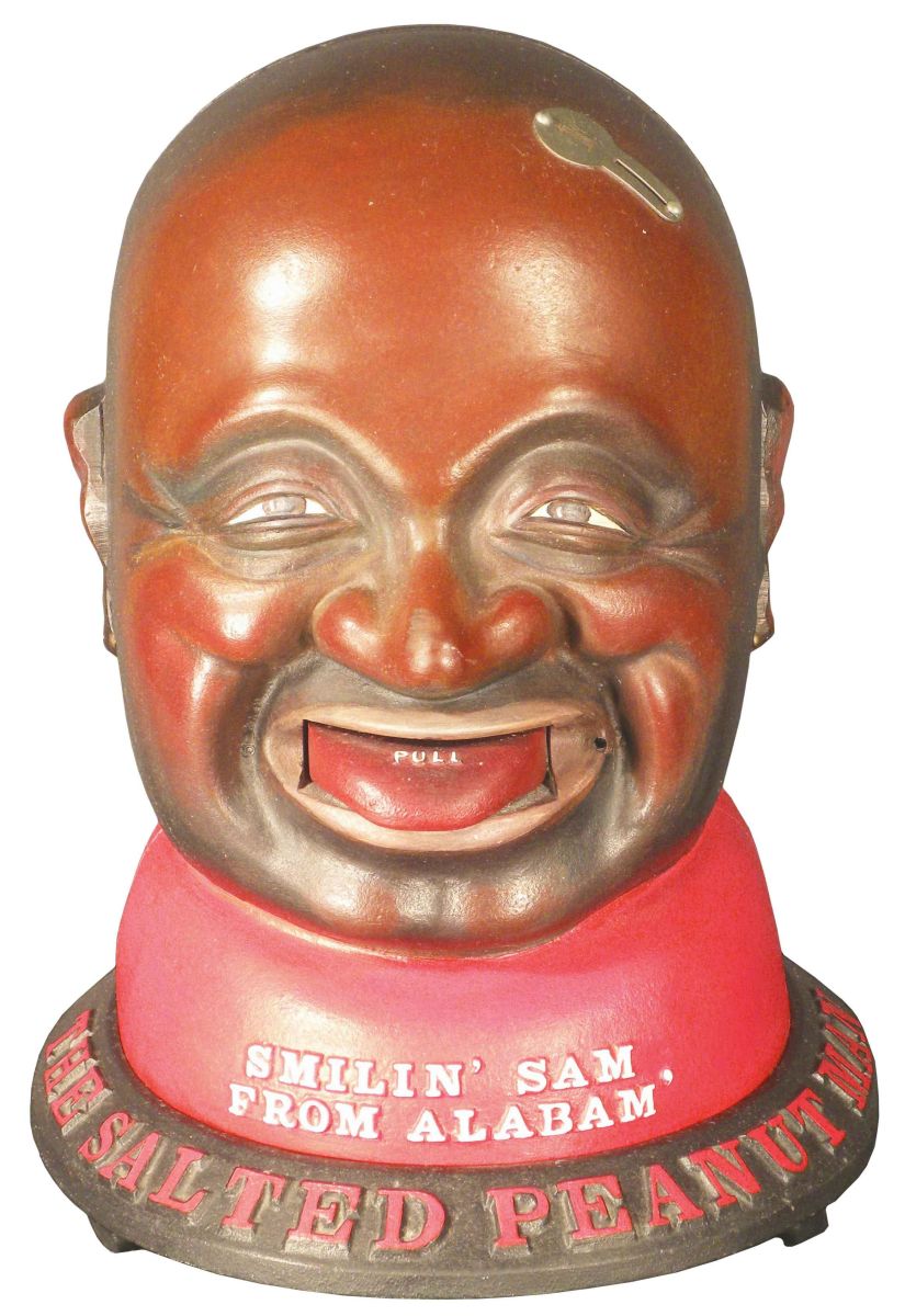 Coin Operated Smilin' Sam Peanut Dispenser. Good Working condition. 9 1/2 X 14 X 11 inches.