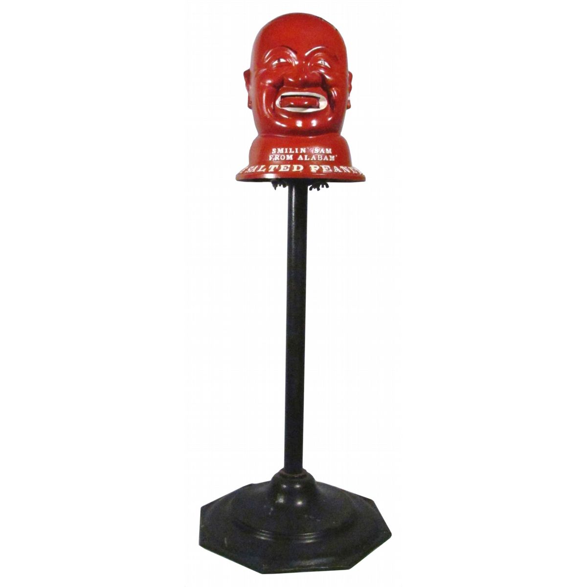 Smilin' Sam from Alabam, The Salted Peanut Man. Original Peanut Vendor on stand. Made by General Mdse Co. 1931. Professional restored, excellent working condition, comes with key.