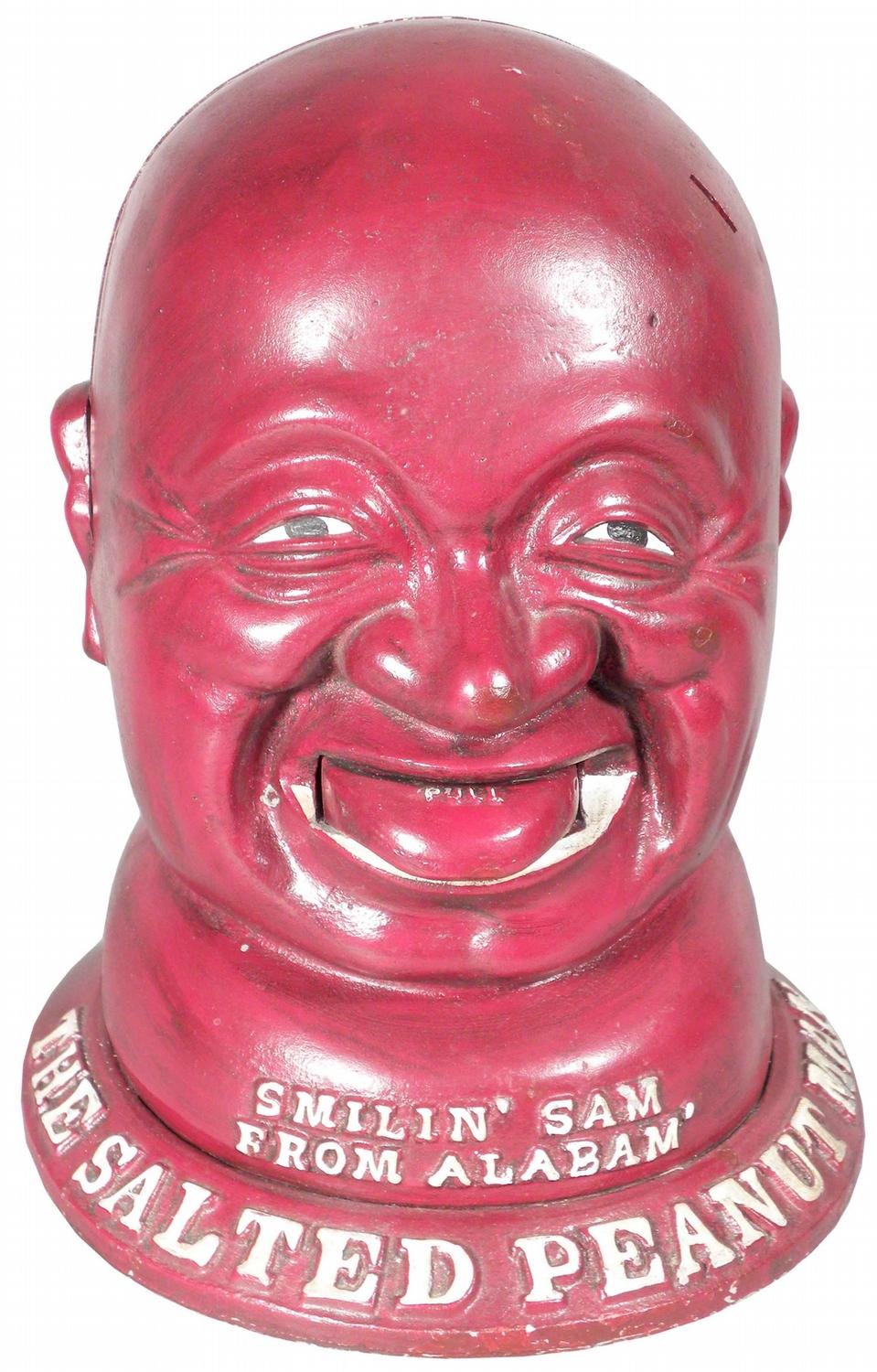 Smilin' Sam from Alabam' The Salted Peanut Man, reproduction. Coin operated peanut dispenser. Comes with key.