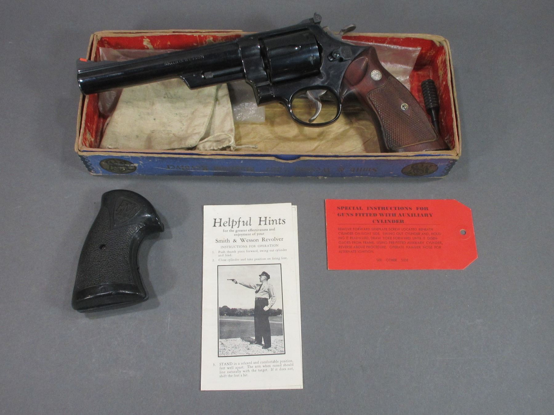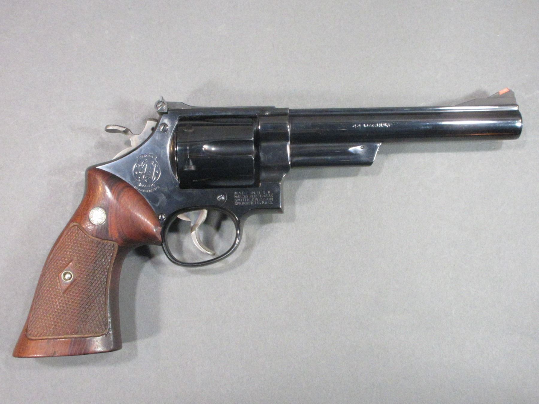 Smith And Wesson 5 Screw Revolver- .44 Mag- 6.5" Barrel- Diamond Checkered Grips- Extra Grips- Cleaning Rods- Box- Excellent Condition- #82827