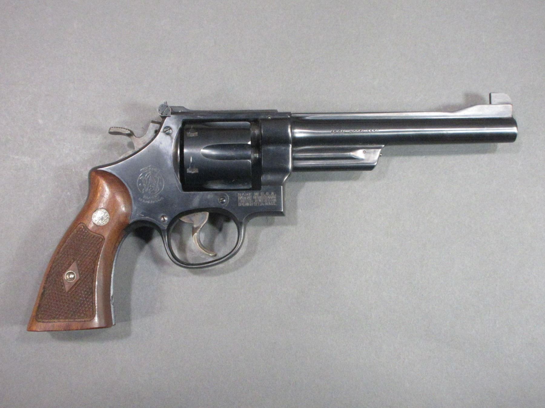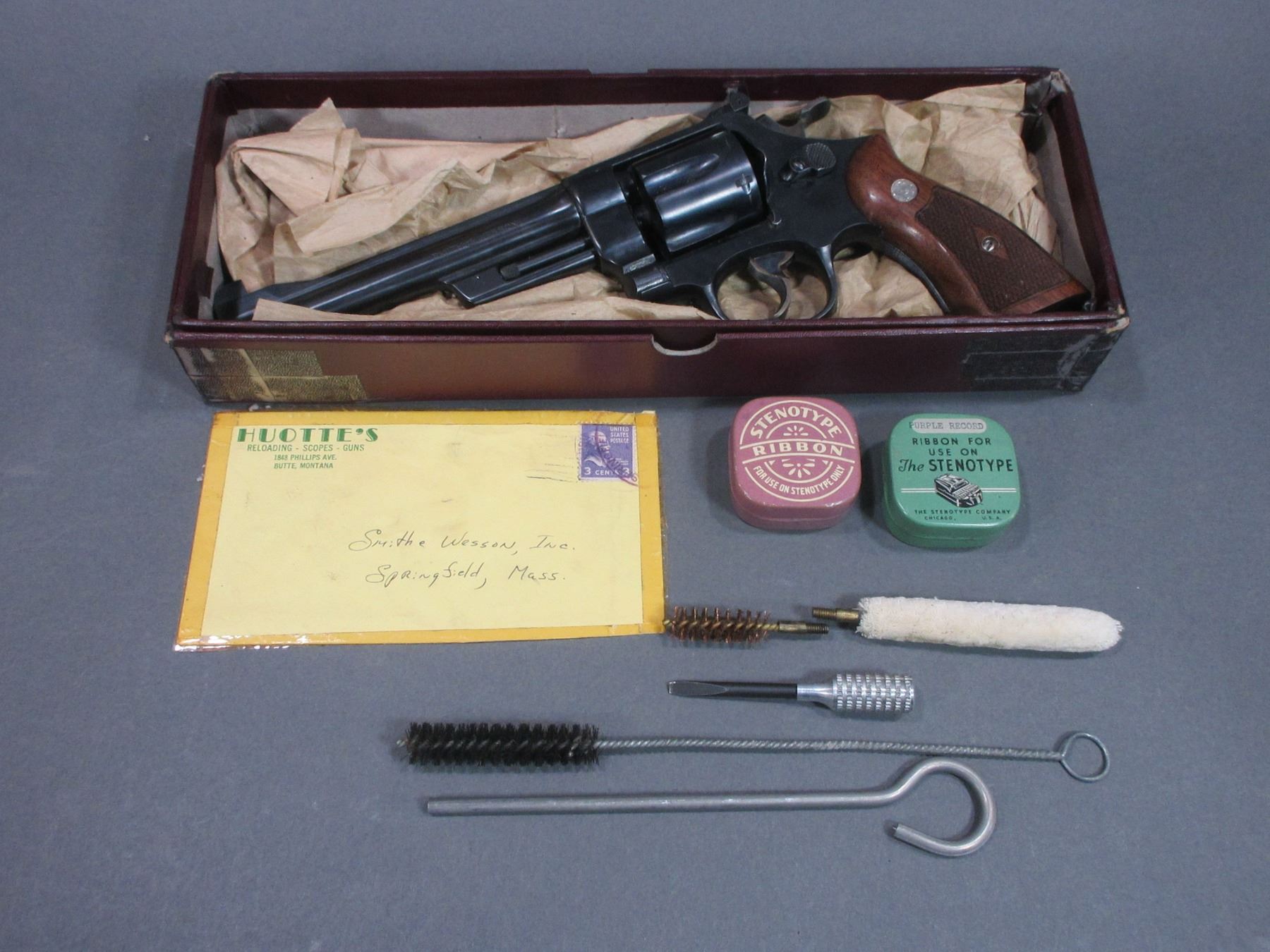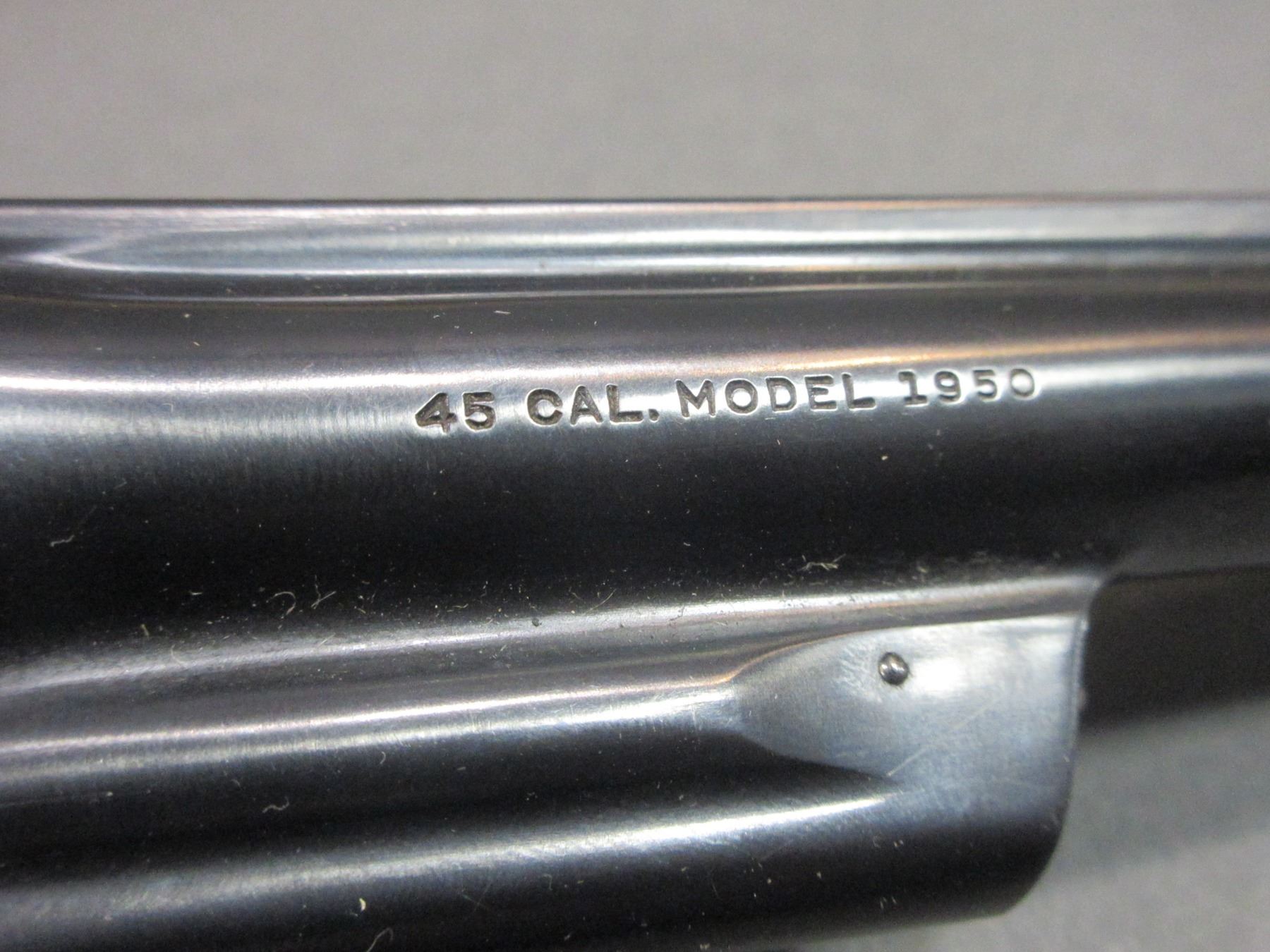 Smith And Wesson Model 1950 5 Screw Revolver- .45 ACP- 6.5" Barrel- Checkered And Diamond Grips- Very Good Condition- Box- Moon Clips- #593998- Matching Numbers