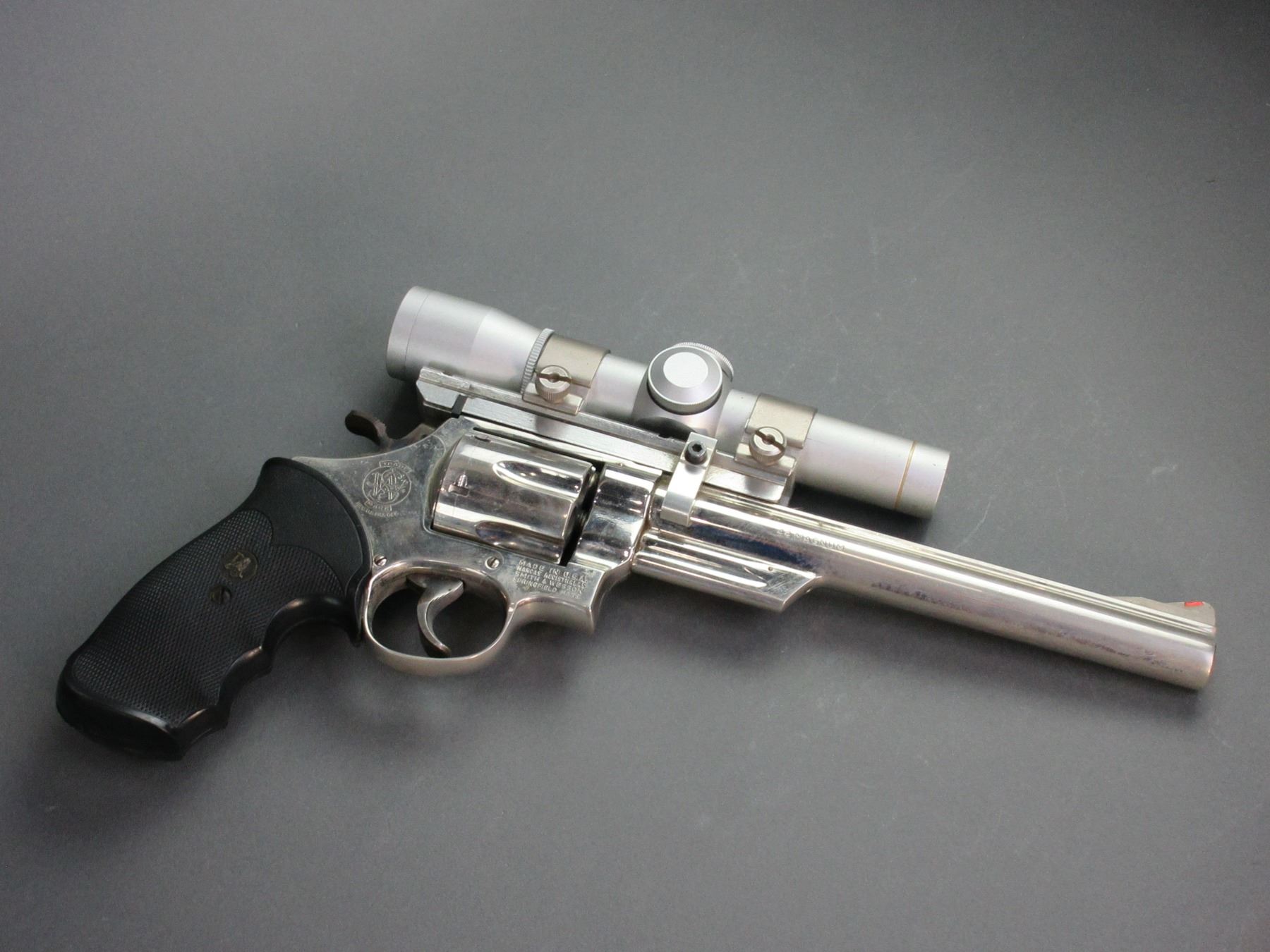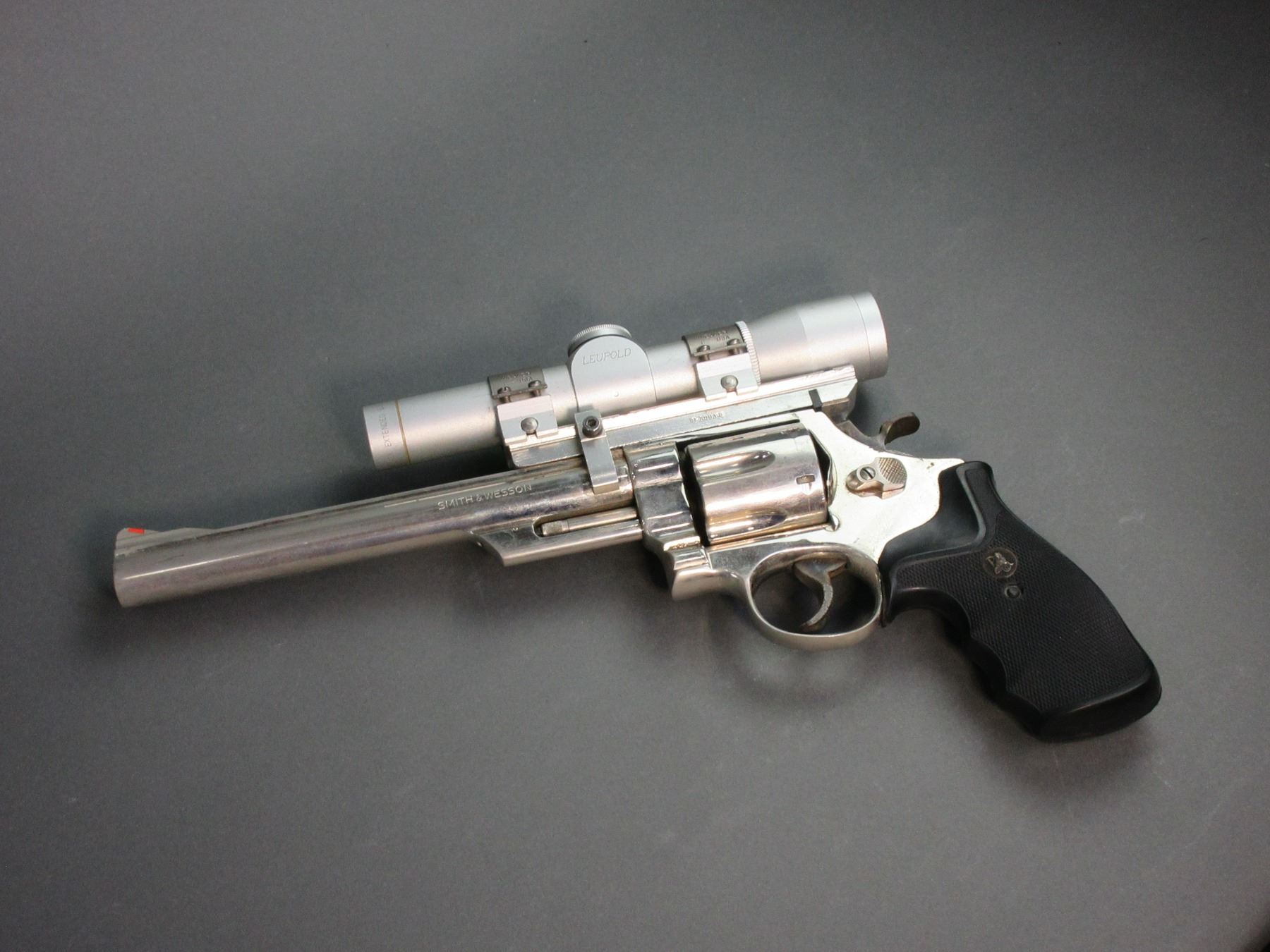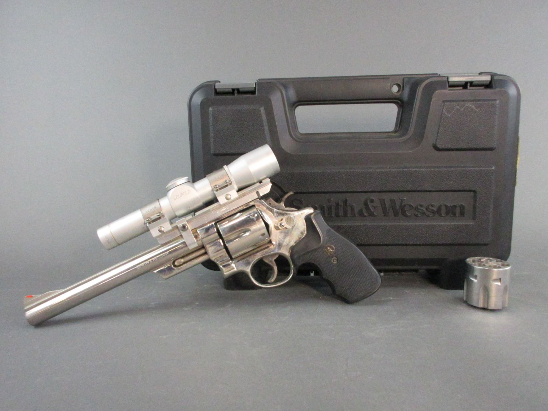 Smith And Wesson Model 29-2 Stainless Revolver- .44 Mag- 8.5" Barrel- Extra Cylinder- Leupold Scope- Hard Case- Fair Condition- #N371885