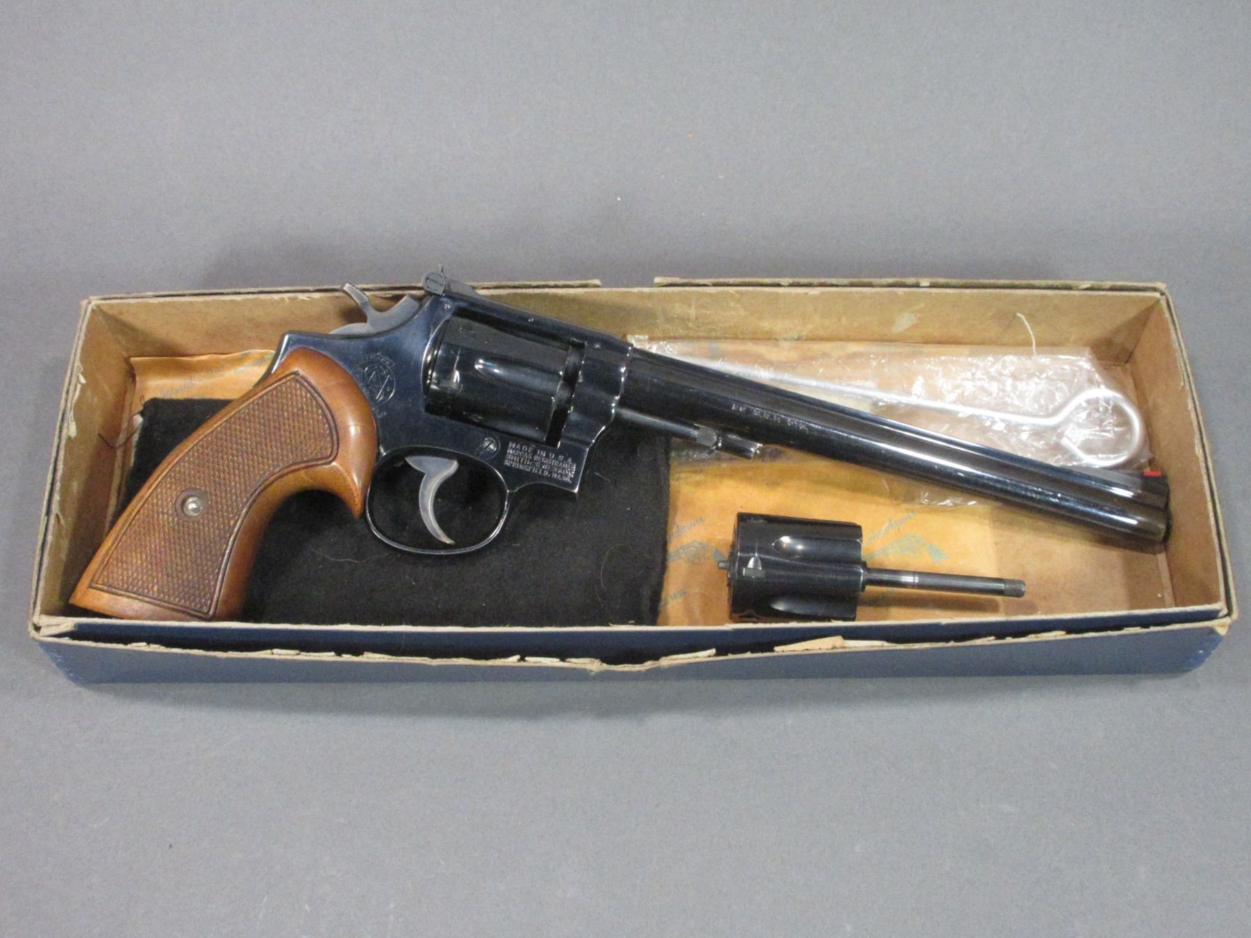 Smith And Wesson Model 48 Revolver- .22 MRF- 8.5" Barrel- Checkered Target Grips- .22 Cylinder Convertible- Cleaning Rods- Box- Very Good Condition- #K372924