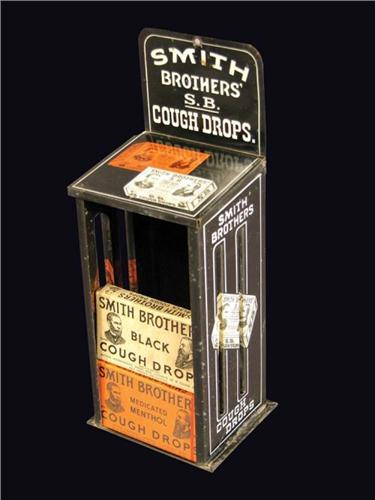 Smith Brothers Cough Drop Store Display, 3 color version with 2 boxes of product. Excellent condition. 4 X 11 X 4 inches.