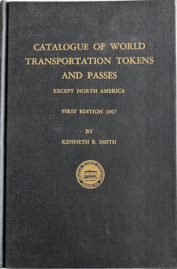 Smith, Kenneth E., Catalogue of World Transportation Tokens and Passes Except North America, First edition 1967 hard bound 268 pages with black an white illustrations; signed by the author. Estimate $60 - 80.