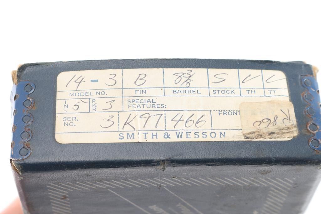 The K-38 Target Masterpiece Medium frame double action revolver chambered in .38 Special, manufactured circa 1972. Features a blued finish, pinned 8 1/2" barrel with serrated sighting rib, raised patridge front sight, adjustable notch rear sight, fluted six-shot cylinder, non-shrouded ejector rod, serrated .500" trigger, .500" checkered spur target hammer, three screw square butt K target frame with ten groove back strap, and two-piece Pachmyer checkered black rubber grips.. Bore is pristine. Retains 98% finish with very minor scratches/rubs. Grips are excellent condition. Action is smooth with tight lock-up. Comes in the original blue cardboard factory with matching label with manual.NRA Condition-Excellent. C&R Firearm.