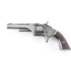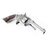Early single action revolver, firing a self-contained cartridge. Features 3.25" octagon barrel, tip up hinged frame, spur trigger. Bore has areas of rust. Address on barrel, patent dates on cylinder, and sn on heel are crisp/clear. retains about 20% of the original blue finish, the rest in the white with light spots rust, edge wear, and scratches. Varnished grips are excellent. Hammer does not cock, hammer/pin are missing. Parts/project gun. NRA Condition-Fair/inoperable. Antique Firearm