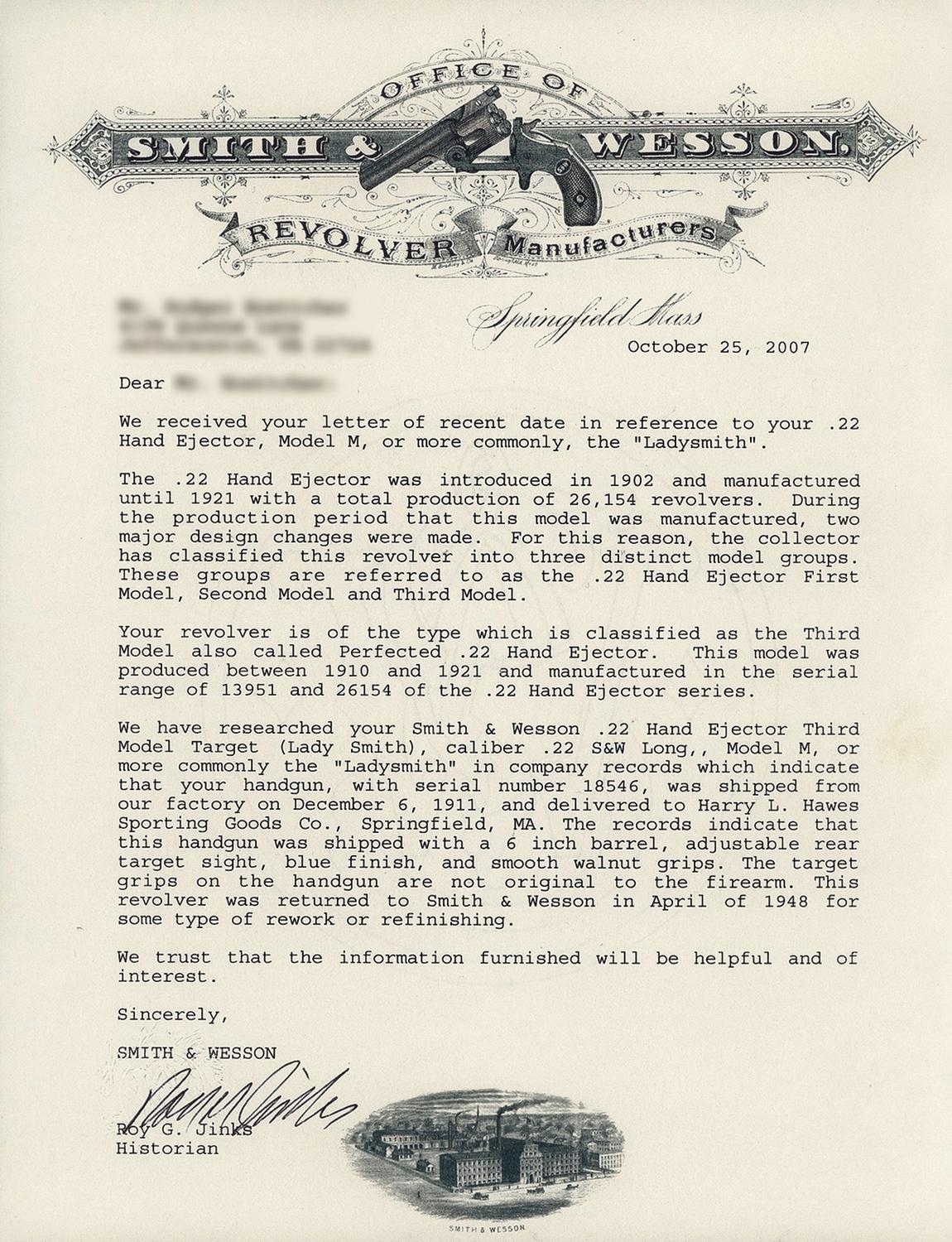 Smith & Wesson 22 Ladysmith 3rd Model Target Revolver with Six Inch Barrel and Factory Letter