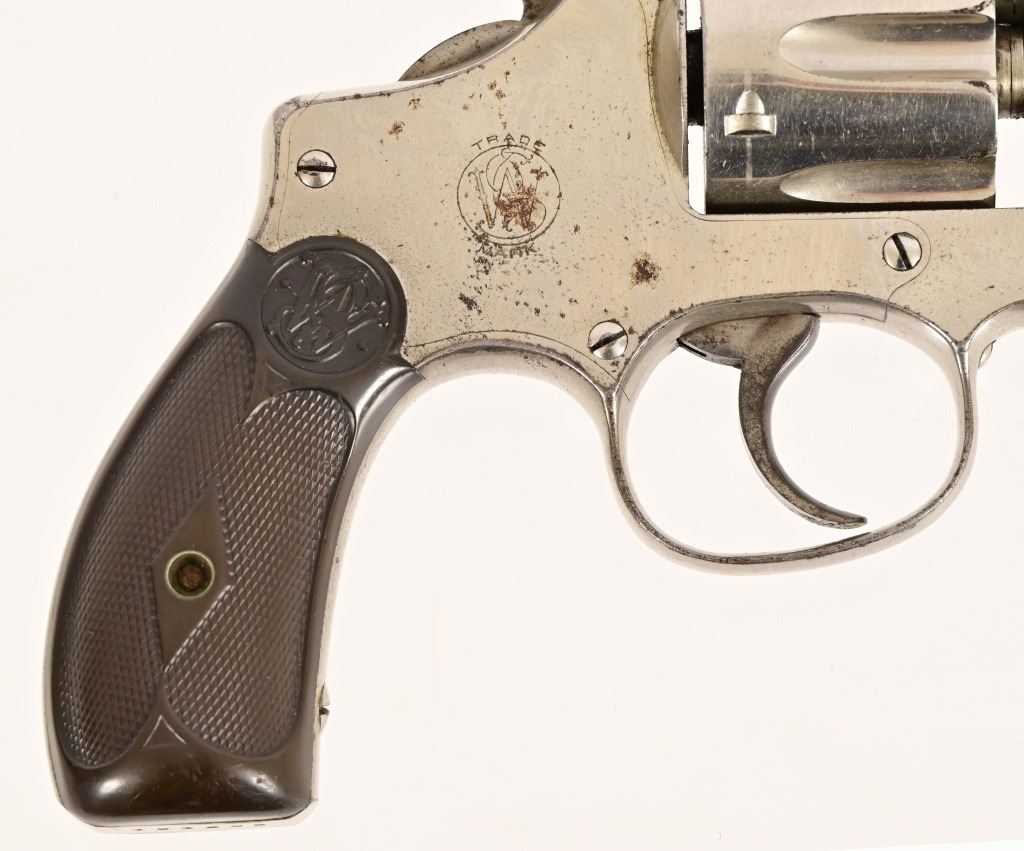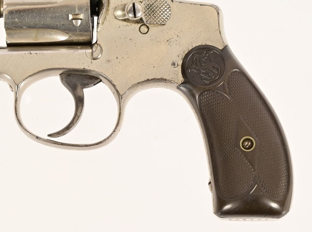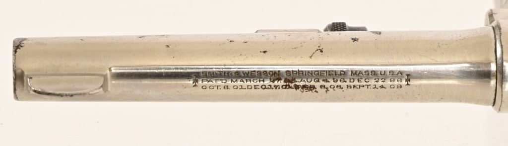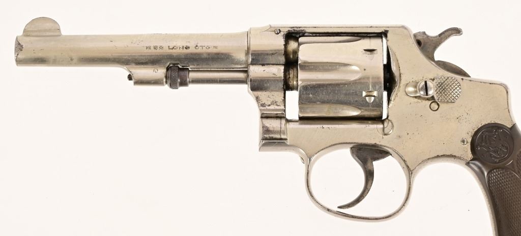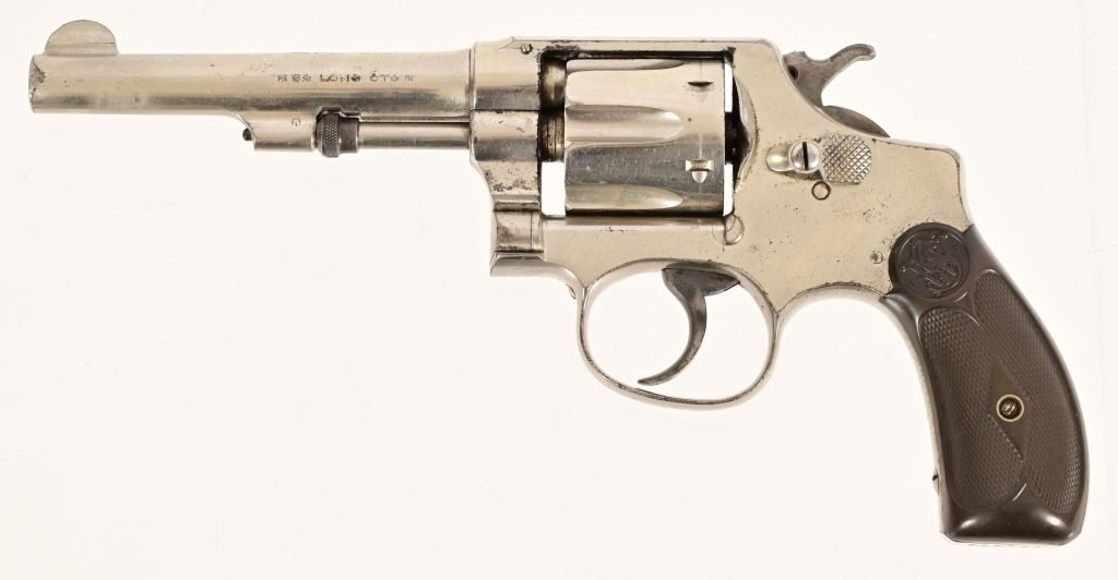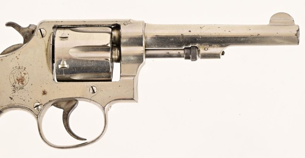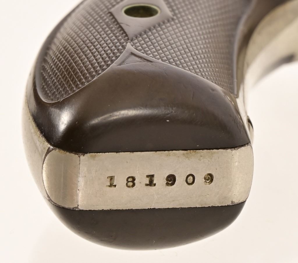 S/N 181909. Hand ejector model. 4" barrel, fair bore. Nickel finish intact to a large degree. Working action. Modern.