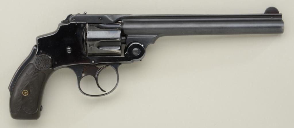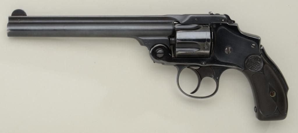Smith & Wesson .38 Safety Hammerless Model DA revolver, U.S. marked on the left side of the barrel assembly at the lug, .38 S&W cal., 6” barrel, re-blued finish, checkered black hard rubber grips, #41380, all matchingvisible numbers including the barrel assembly. This gun is in overall good condition as refinished with a good action, good markings, good bore and good grips showing wear and a couple mars. Smith &Wesson accounts show 100 .38 Safety Hammerless Army Test revolvers were sold to the U.S. Government in May 1890 in the serial range of 41,333-41,470 and they were blue finished with 6” barrels. No furtherdocumentation provided by the estate of this consignor, but in our opinion, the gun appears correct; should be factory lettered however to verify. From the Dr. John Hall Collection. Est.: $1,000-$3,000+.
