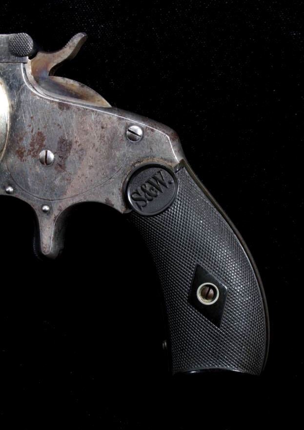For your consideration is a Smith & Wesson Model 2. The Smith & Wesson Model 2, also referred to as the Smith & Wesson .38 Single Action, was Smith & Wesson's first .38 caliber revolver. Chambered in .38 S&W, its cylinder held 5 shots. The Smith & Wesson Model 2 was a "top-break", with the barrel release catch located on the top of the frame, just in front of the hammer. The nickel plating on this revolver has developed a light patina. Action is tight and mechanical function is sound. Rifling in the barrel is in good shape. The grips are checkered with diamond patterns around the screw and "S&W." in circles at the top. This gun is an Antique and an FFL is not required.
