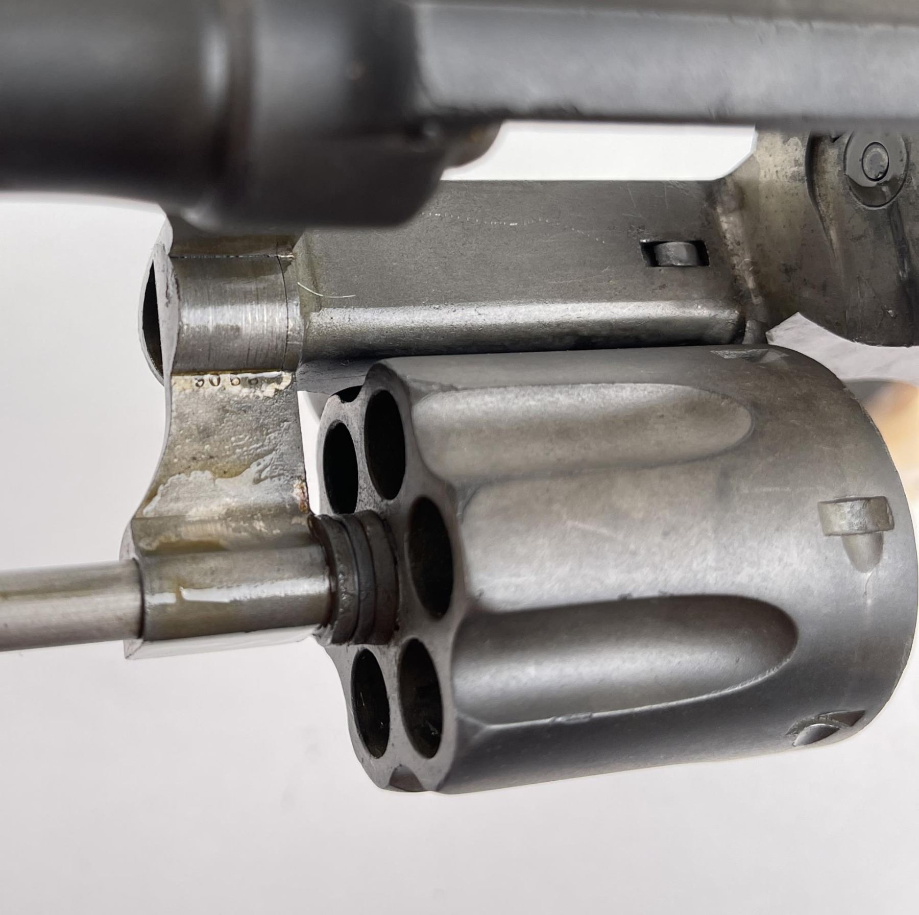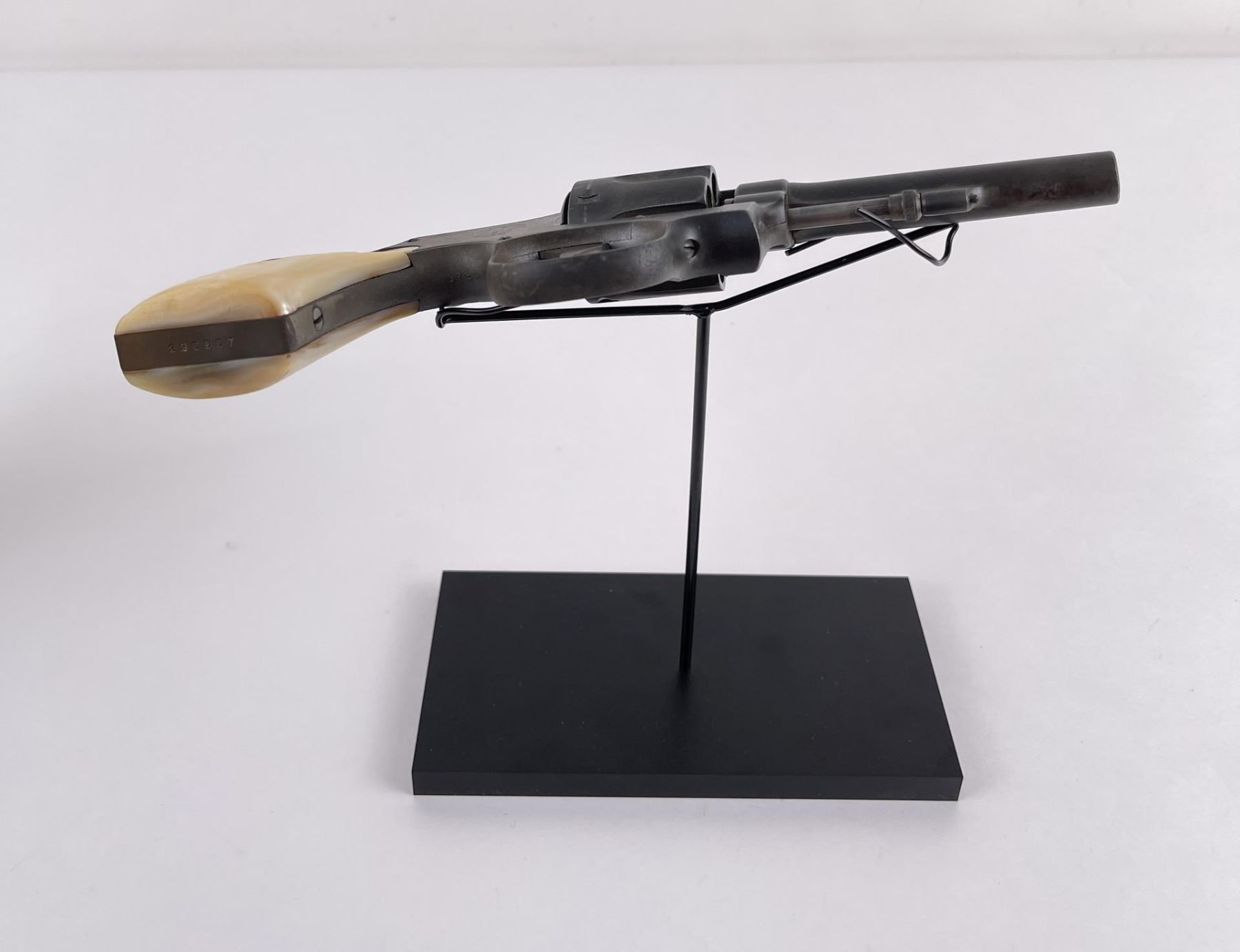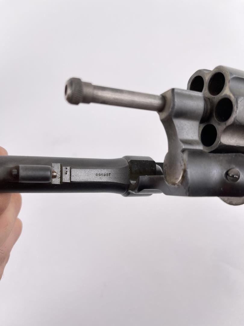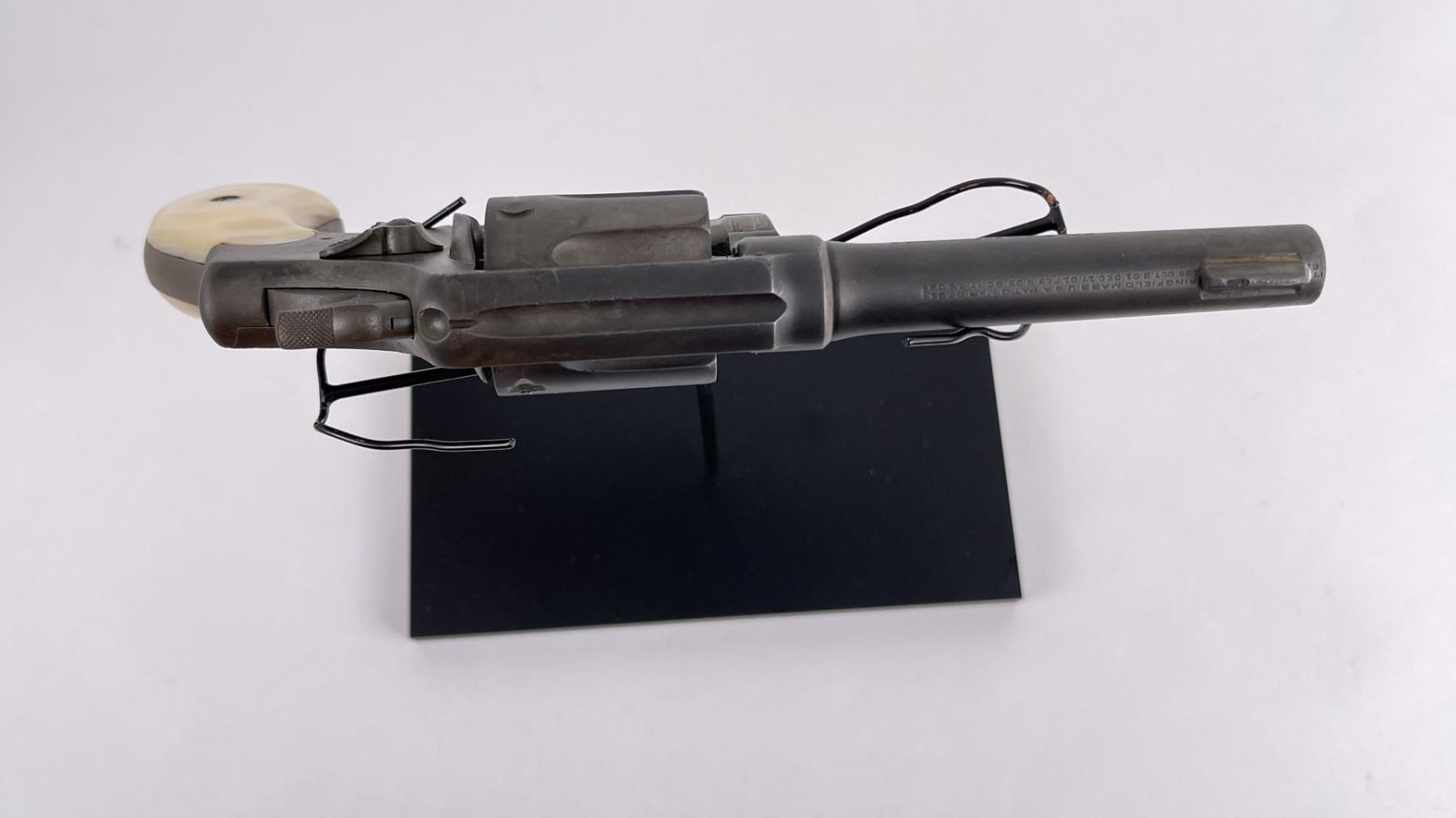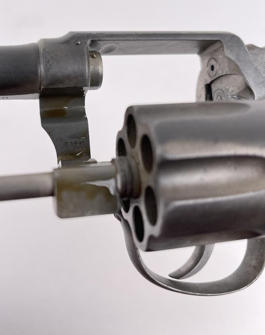 Revolver shows pitting. Mother of pearl grips. 4" barrel. Requires FFL Transfer.