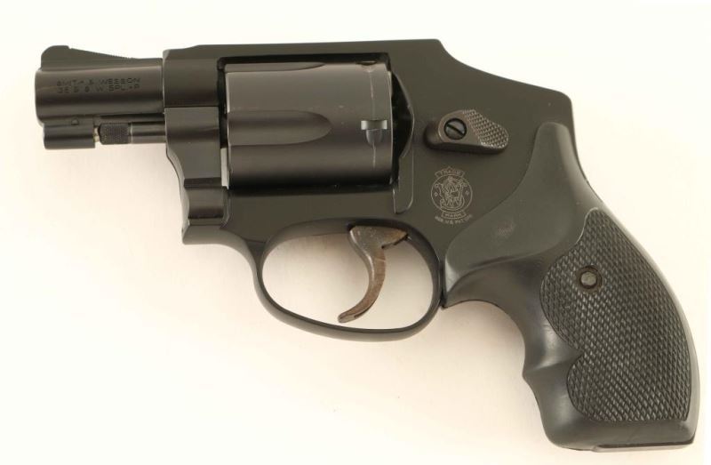 '.38 Special Centennial Airweight' Lightweight small frame double-action-only concealed hammer revolver chambered in .38 Special and rated for +P ammunition. Features a matte blued/black finish, 1 7/8" ribbed barrel, serrated ramp front sight, square notched rear sight, fluted five-shot cylinder, non-shrouded ejector rod, MIM .312" smooth combat trigger, concealed hammer, internal key lock safety, three screw round butt alloy J Magnum frame and two-piece checkered black rubber Boot grips by Uncle Mike's. Includes the original factory hard case with documents, parchment paper, spent case and keys. Revolver retains approximately 95% of it's original finish showing minimal wear with some light emerging surface rust on the cylinder. Action is crisp with tight lock-up, the bore is excellent and the rubber grips are very good. Condition is near NRA Very Good in case. ***Modern Firearm***
