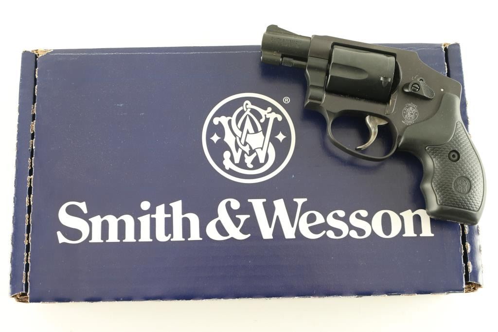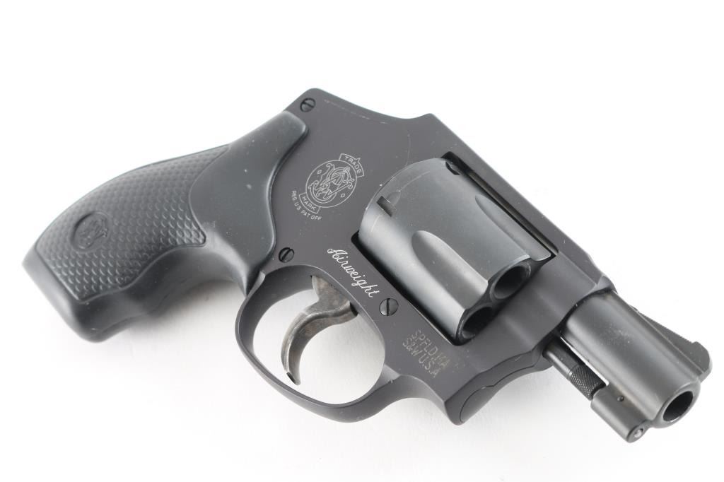 'Airweight' +P rated. Small frame D.A.O. concealed hammer revolver. Features blued/black finish, 1.78" bbl, blade front sight, square notched rear sight, fluted five shot cylinder, round butt frame, frame lock, textured black rubber finger groove grip. Bore is very good condition. Retains 95% finish with handling marks, signs of use. Grips are very good. Smooth action with tight lock-up. Includes factory box with papers. Condition is near NRA Excellent *** Modern Firearm ***